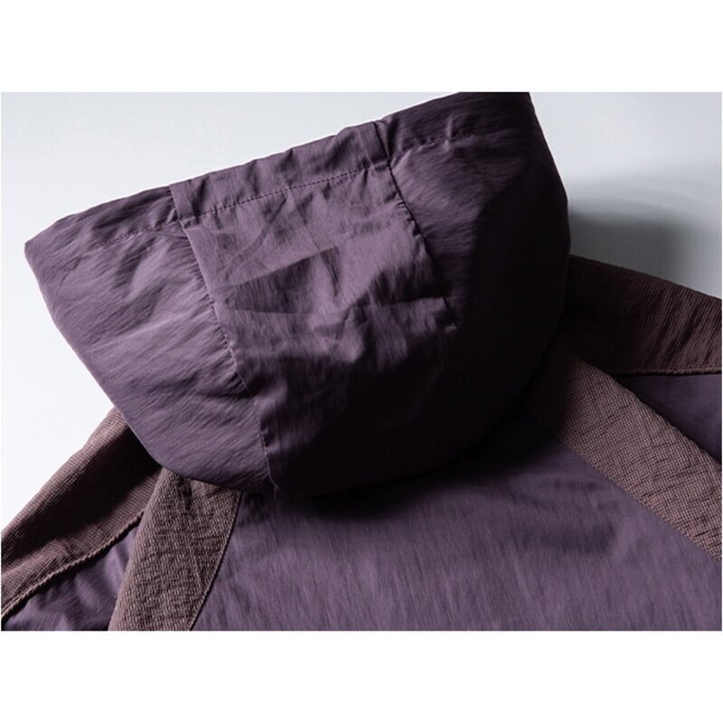 【商品管理番号】 M0483 【商品説明】 軽やかな質感が魅力のスポーティーでカジュアルなフード付きジャケットが登場です!デイリースタイルからアウトドアシーンまで幅広く活躍するデザインで、動きやすさとスタイルを両立させています。シンプルなトップスやボトムスと組み合わせるだけで、簡単にこなれた印象に仕上がります。さまざまなシーンでおしゃれを楽しむための必携アイテムです! GRAY/BLUE/PURPLE/BLUEGRAY 【サイズ】 【S】裄丈:74cm / 胸囲:63cm / 着丈:66cm / 裾まわり:61cm 【M】裄丈:76cm / 胸囲:65cm / 着丈:68cm / 裾まわり:63cm 【L】裄丈:78cm / 胸囲:67cm / 着丈:70cm / 裾まわり:65cm 【XL】裄丈:80cm / 胸囲:69cm / 着丈:72cm / 裾まわり:67cm 【2XL】裄丈:82cm / 胸囲:71cm / 着丈:74cm / 裾まわり:69cm ※サイズは測り方により1-3㎝の誤差が生じる場合がございます。 【素材】 nylon42%/polyester58%