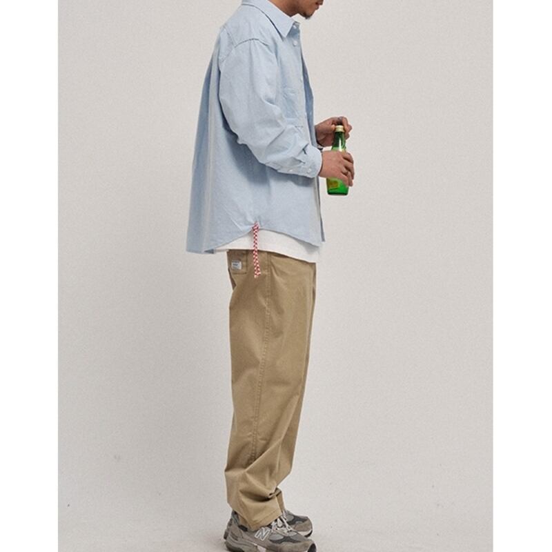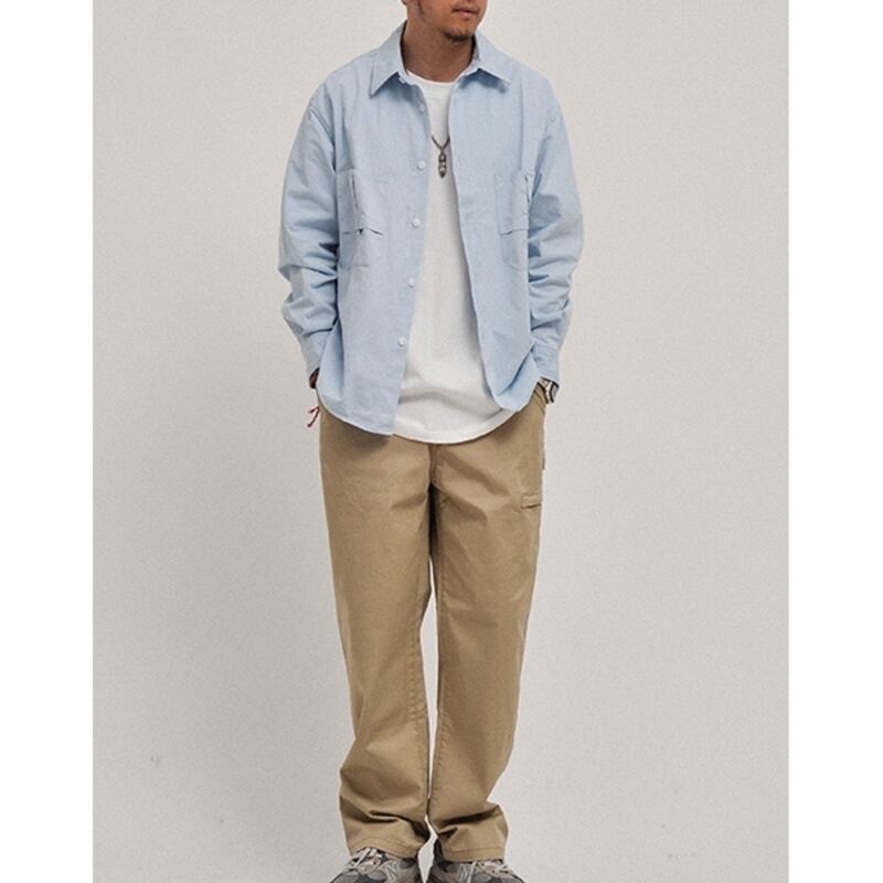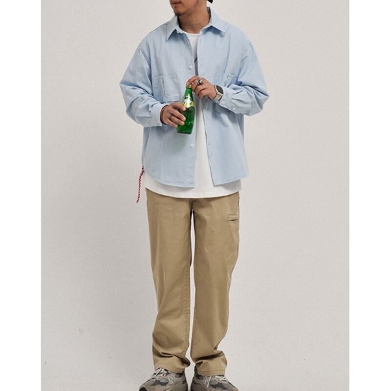 【商品管理番号】 M0491 【商品説明】 パッチポケット付きでこなれた質感に仕立てた長袖シャツが登場!リラックス感のあるシルエットが特徴で、ラウンドヘムがカジュアルなのにどこかオシャレな一着です。デイリーコーデはもちろん、友達とのお出かけシーンにもぴったりで、着回し力が非常に高いアイテムです。お好きなカラーであなたらしいスタイルを楽しんでください。 BLUE/WHITE 【サイズ】 【M】肩幅:53cm / 胸囲:140cm / 着丈:77cm / 袖丈:57cm 【L】肩幅:54cm / 胸囲:144cm / 着丈:79cm / 袖丈:58cm 【XL】肩幅:55cm / 胸囲:148cm / 着丈:81cm / 袖丈:59cm 【2XL】肩幅:55cm / 胸囲:148cm / 着丈:81cm / 袖丈:59cm モデル身長:171㎝/体重:60㎏/着用サイズ:Mサイズ ※サイズは測り方により1-3㎝の誤差が生じる場合がございます。 【素材】 cotton100%