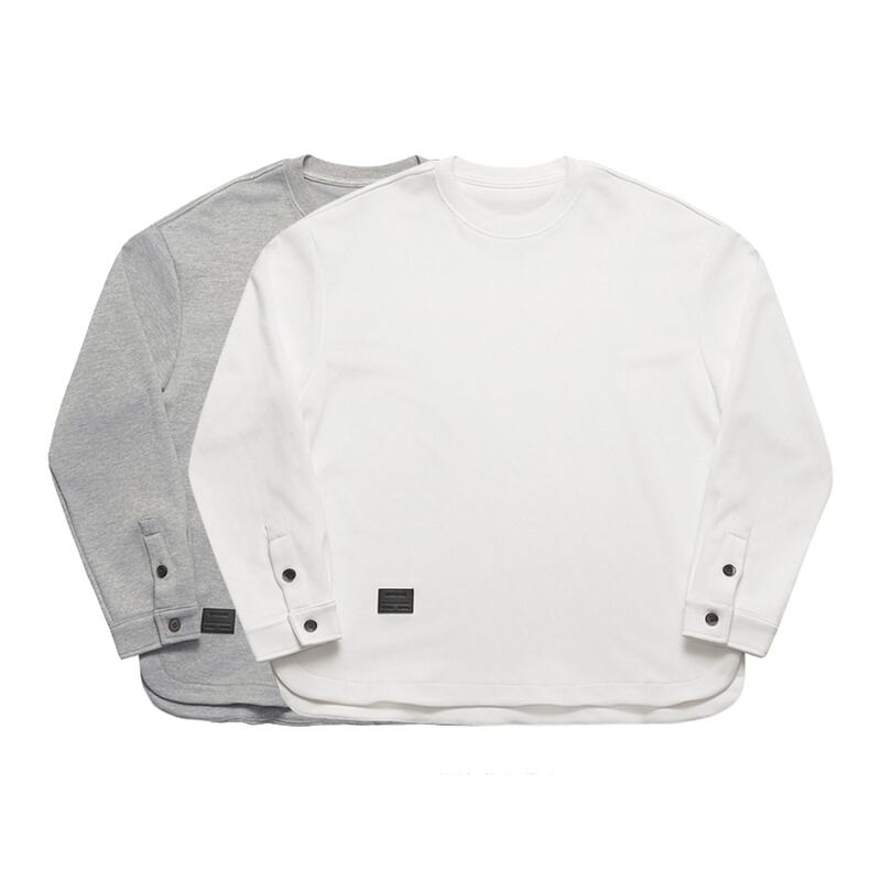 button sleeve roundhem T-shirt 2color M0496