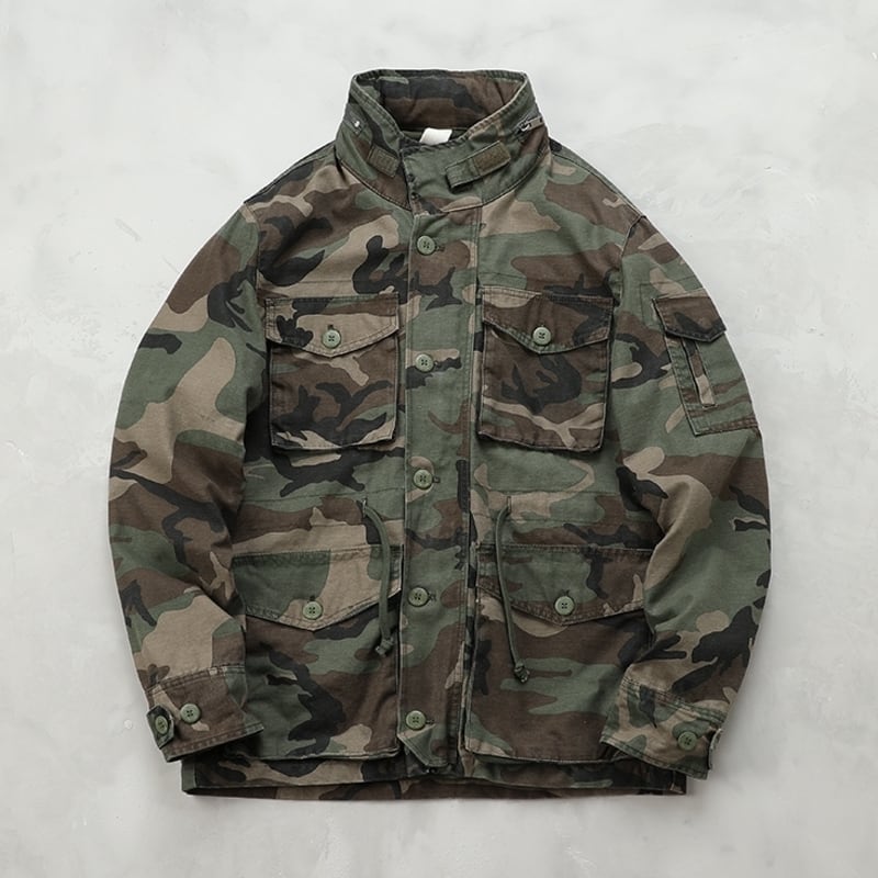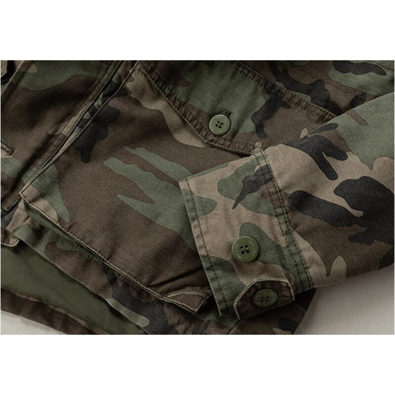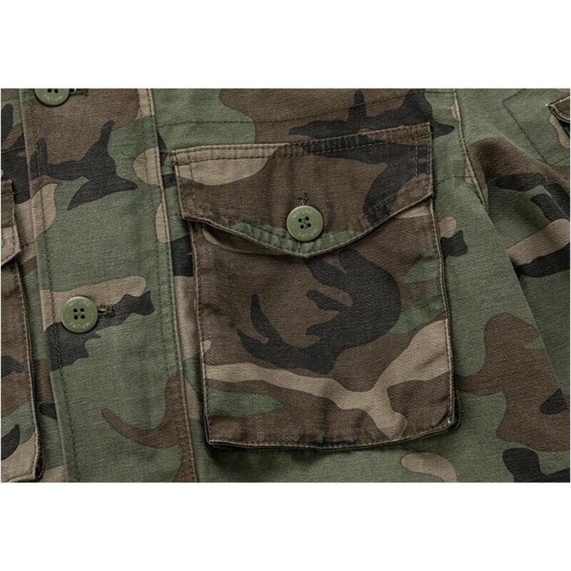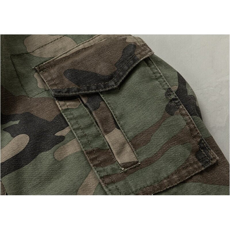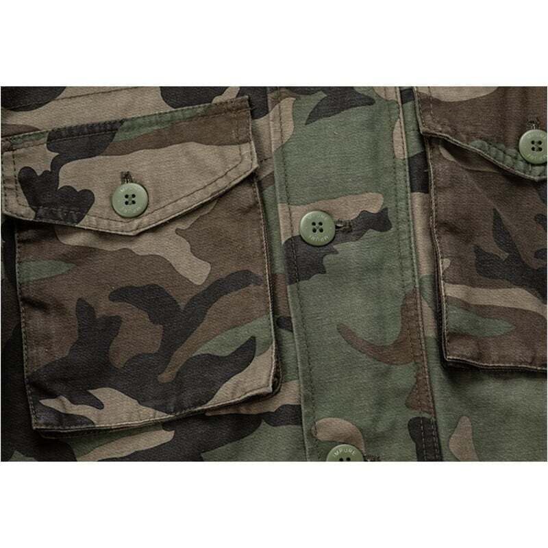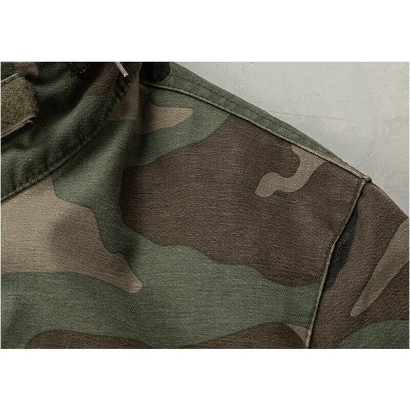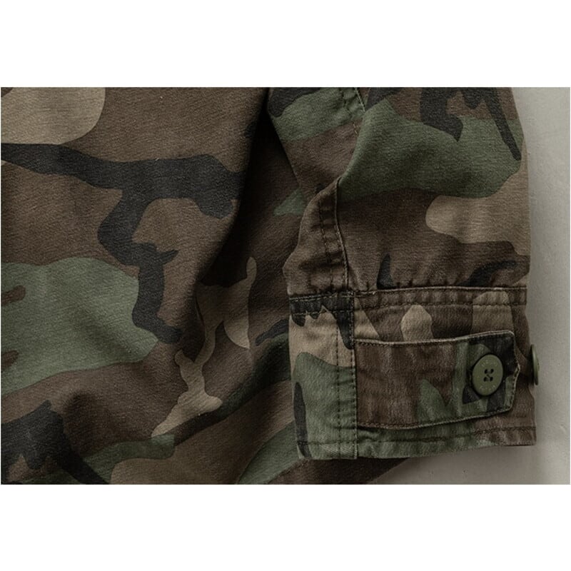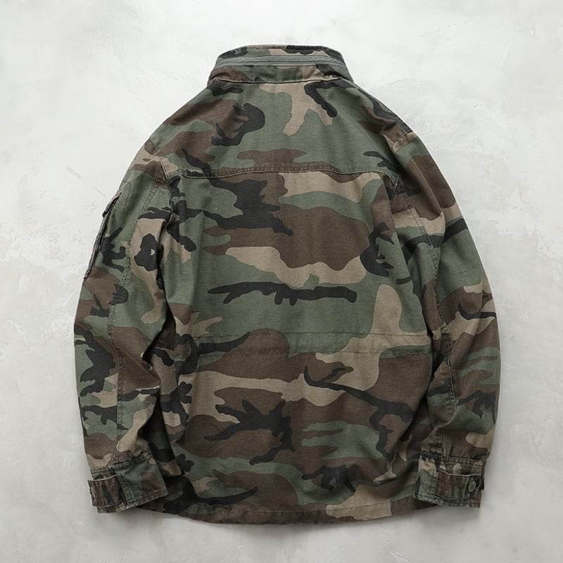 【商品管理番号】 M0505 【商品説明】 ヴィンテージ調の色味が絶妙なカモフラージュ柄ジャケットです。マルチポケットが個性的な印象を与える一着。カジュアルなスタイルから、ちょっとしたお出かけまで幅広くコーディネートできるアイテムです。着こなしの幅を広げる、使い勝手の良いジャケットです。 GREEN 【サイズ】 【M】肩幅:46cm / 胸囲:114cm / 着丈:75cm / 袖丈:68cm 【L】肩幅:48cm / 胸囲:118cm / 着丈:77cm / 袖丈:69cm 【XL】肩幅:50cm / 胸囲:122cm / 着丈:79cm / 袖丈:70cm 【2XL】肩幅:52cm / 胸囲:126cm / 着丈:81cm / 袖丈:71cm ※サイズは測り方により1-3㎝の誤差が生じる場合がございます。 【素材】 cotton100%