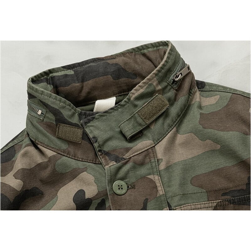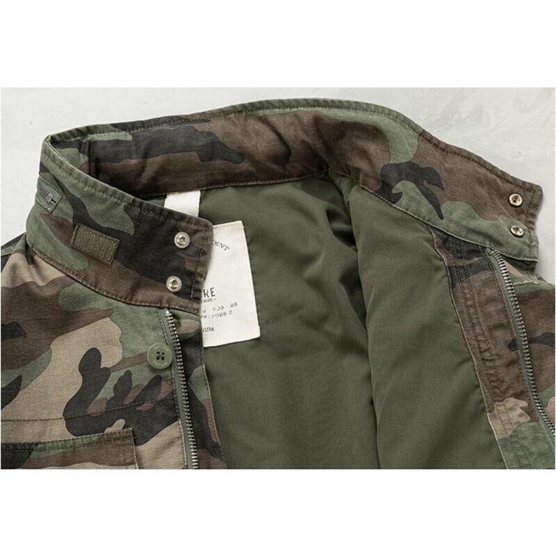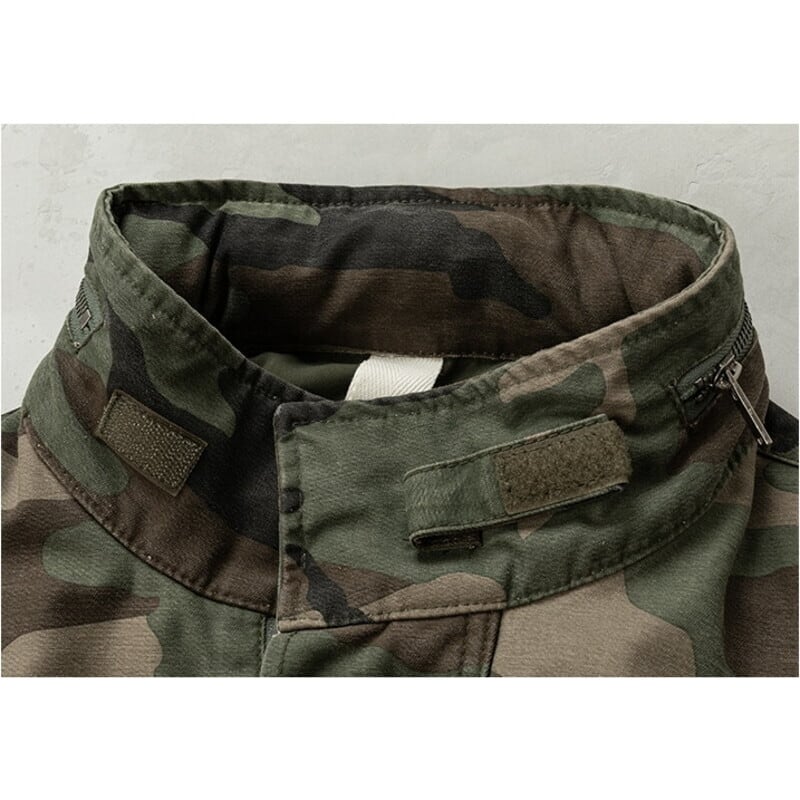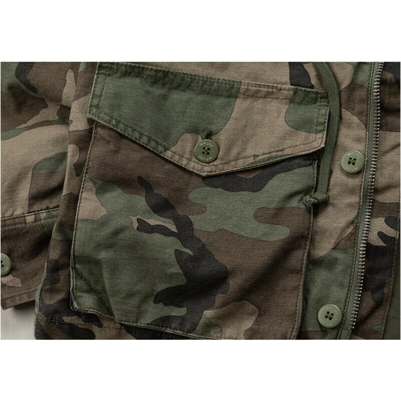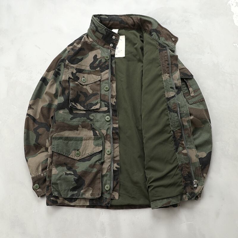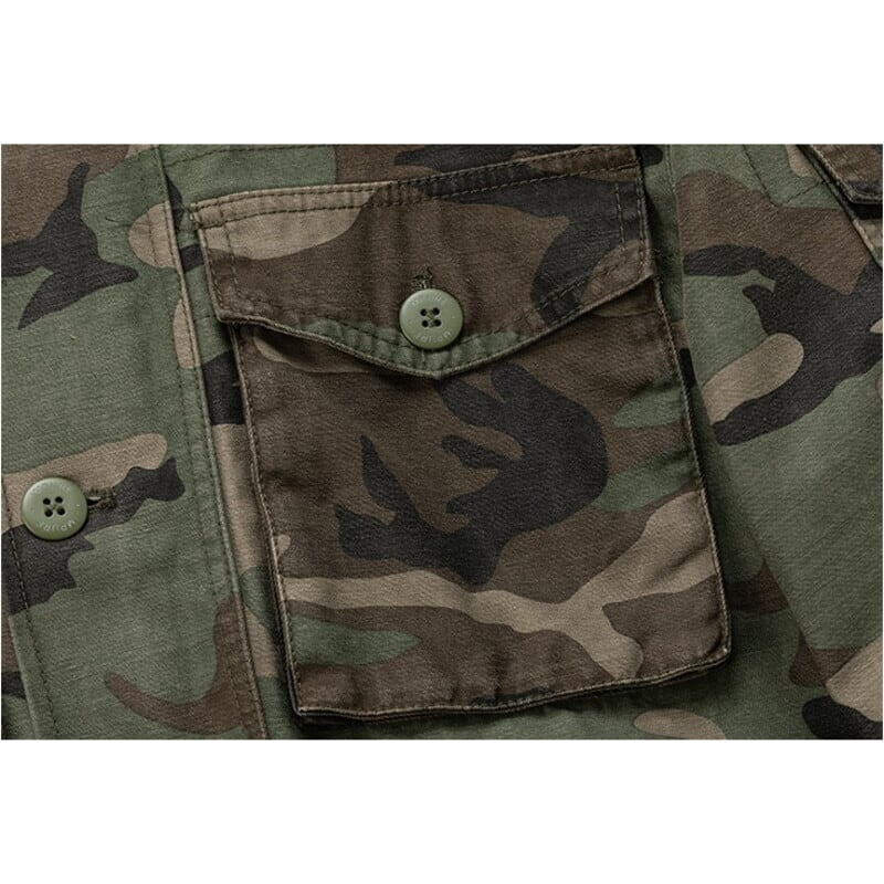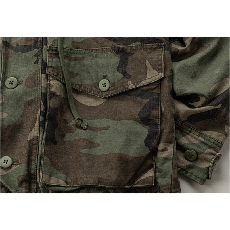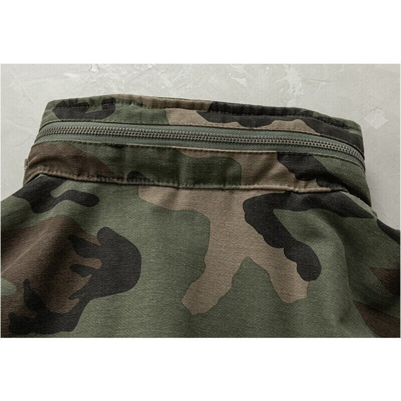 【商品管理番号】 M0505 【商品説明】 ヴィンテージ調の色味が絶妙なカモフラージュ柄ジャケットです。マルチポケットが個性的な印象を与える一着。カジュアルなスタイルから、ちょっとしたお出かけまで幅広くコーディネートできるアイテムです。着こなしの幅を広げる、使い勝手の良いジャケットです。 GREEN 【サイズ】 【M】肩幅:46cm / 胸囲:114cm / 着丈:75cm / 袖丈:68cm 【L】肩幅:48cm / 胸囲:118cm / 着丈:77cm / 袖丈:69cm 【XL】肩幅:50cm / 胸囲:122cm / 着丈:79cm / 袖丈:70cm 【2XL】肩幅:52cm / 胸囲:126cm / 着丈:81cm / 袖丈:71cm ※サイズは測り方により1-3㎝の誤差が生じる場合がございます。 【素材】 cotton100%