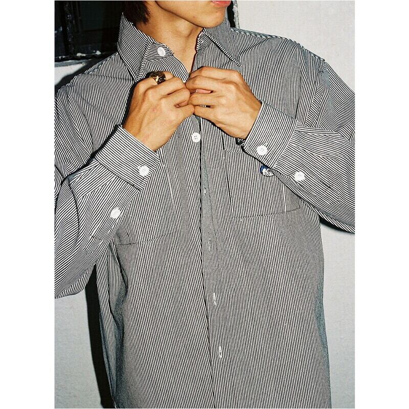 【商品管理番号】 M0533 【商品説明】 ストライプパターンががこなれた、ワンポイント刺繍が遊び心あふれるオーバーサイズシャツです。リラックスしたシルエットが特徴で、カジュアルでありながらエレガントな印象を与えます。デイリーコーデにはもちろん、特別な日のお洒落にもぴったり。さまざまなスタイルで自由に着こなして、自分だけのファッションを楽しんでください。 BLACK 【サイズ】 【S】肩幅:51cm / 胸囲:118cm / 着丈:72cm / 袖丈:57cm 【M】肩幅:52cm / 胸囲:122cm / 着丈:73.5cm / 袖丈:58cm 【L】肩幅:53cm / 胸囲:126cm / 着丈:75cm / 袖丈:59cm 【XL】肩幅:54cm / 胸囲:132cm / 着丈:77cm / 袖丈:60cm モデル身長:180㎝/体重:65㎏/着用サイズ:Lサイズ ※サイズは測り方により1-3㎝の誤差が生じる場合がございます。 【素材】 cotton65%/polyester35%