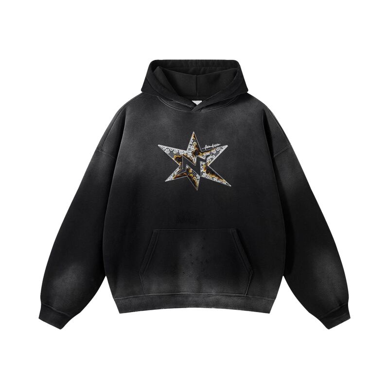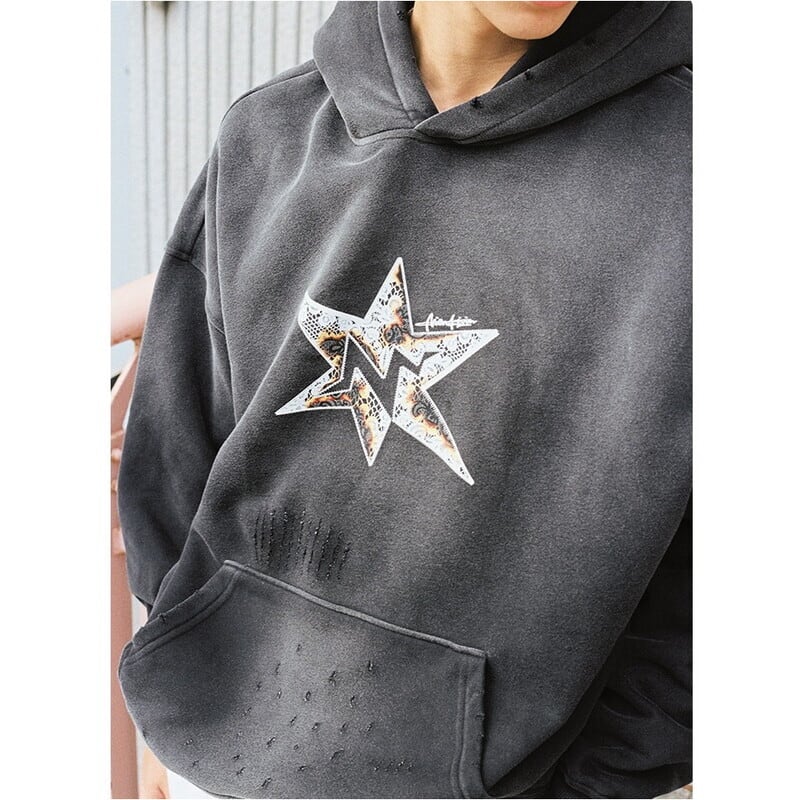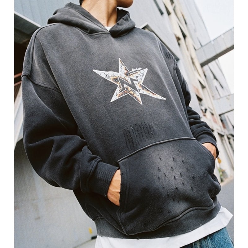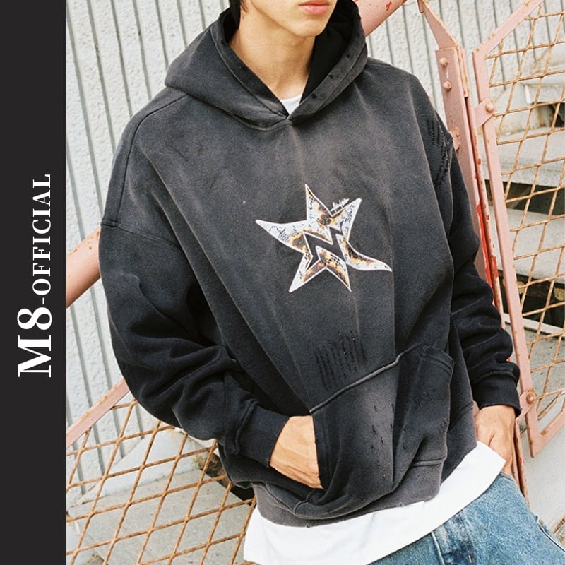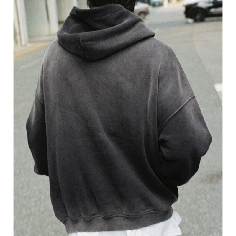 【商品管理番号】 M0534 【商品説明】 ゆったりとしたフードと便利なカンガルーポケットが付いたパーカーは、毎日のコーデにぴったり。 ウォッシュ加工とクラッシュ加工を施したヴィンテージ調の色味とレトロなプリントがこなれたデザインで、絶妙な配色がアクセントになりどんなスタイルにも合わせやすいアイテムです。 GRAY/BLACK 【サイズ】 【S】肩幅:66.5cm / 胸囲:132cm / 着丈:66cm / 袖丈:53.5cm 【M】肩幅:68cm / 胸囲:136cm / 着丈:68cm / 袖丈:54.5cm 【L】肩幅:69.5cm / 胸囲:140cm / 着丈:70cm / 袖丈:55.5cm 【XL】肩幅:71cm / 胸囲:144cm / 着丈:73cm / 袖丈:56.5cm 【2XL】肩幅:72.5cm / 胸囲:148cm / 着丈:76cm / 袖丈:57.5cm モデル身長:180㎝/体重:65㎏/着用サイズ:Lサイズ ※サイズは測り方により1-3㎝の誤差が生じる場合がございます。 【素材】 cotton52%/polyester48%