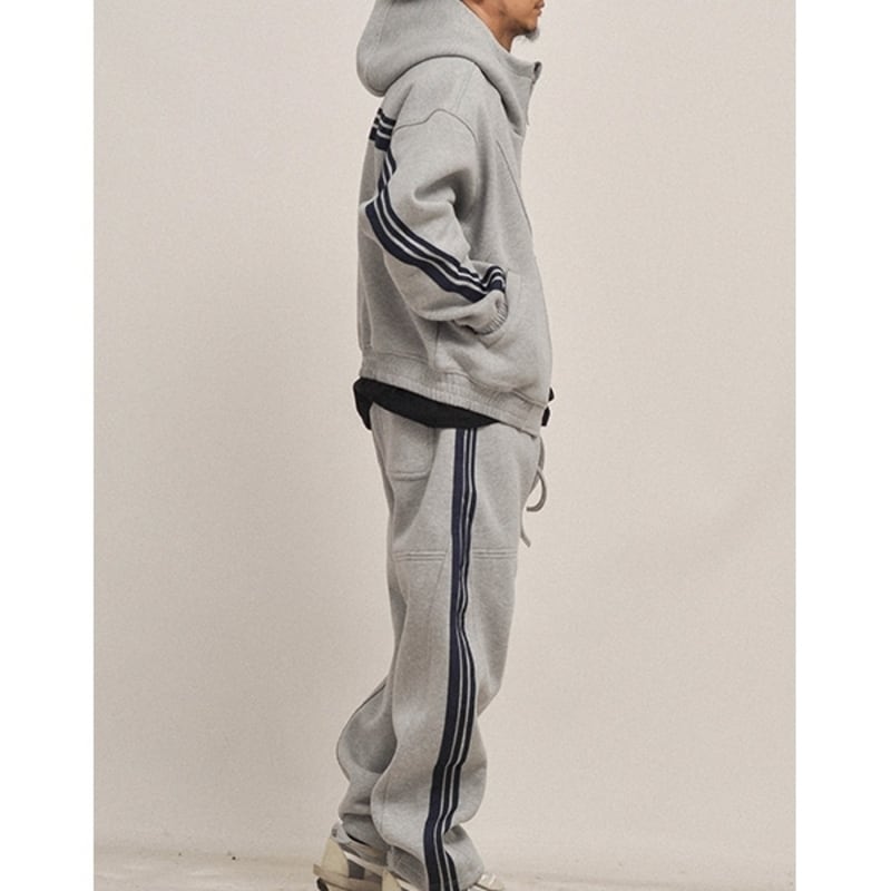 【商品管理番号】 M0539 【商品説明】 ゆったりとしたフードと便利なカンガルーポケットが付いたパーカーは、毎日のコーデにぴったり。ハイネックとヘビーウェイトの質感がこなれたシルエットです。4色のベーシックなカラーバリエーションと、ラインがアクセントになったデザインがポイント。シンプルなデザインで、どんなスタイルにも合わせやすいアイテムです。 GRAY/BLACK/GRAYWHITE/NAVY 【サイズ】 【S】肩幅:60cm / 胸囲:124cm / 着丈:59cm / 袖丈:54cm 【M】肩幅:62cm / 胸囲:128cm / 着丈:61cm / 袖丈:55cm 【L】肩幅:64cm / 胸囲:132cm / 着丈:63cm / 袖丈:56cm 【XL】肩幅:66cm / 胸囲:136cm / 着丈:65cm / 袖丈:57cm 【2XL】肩幅:68cm / 胸囲:140cm / 着丈:67cm / 袖丈:58cm モデル身長:171㎝/体重:60㎏/着用サイズ:Mサイズ ※サイズは測り方により1-3㎝の誤差が生じる場合がございます。 【素材】 cotton70%/polyester30%