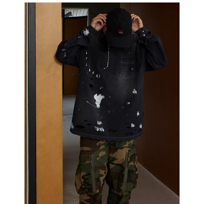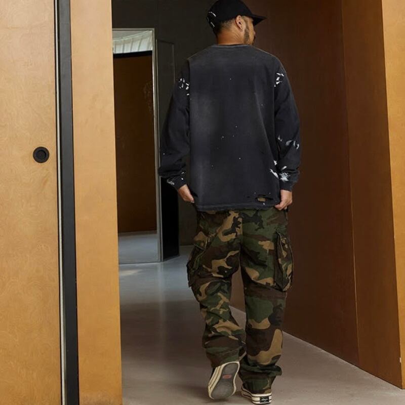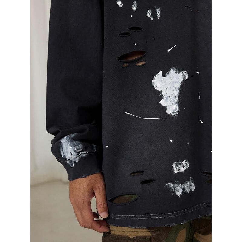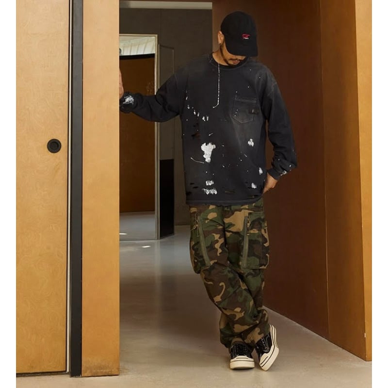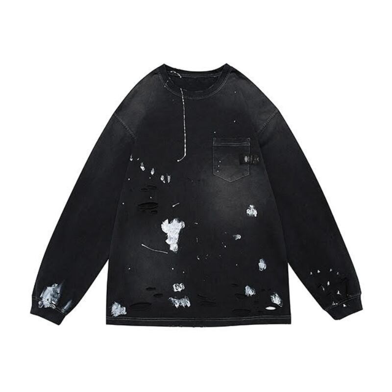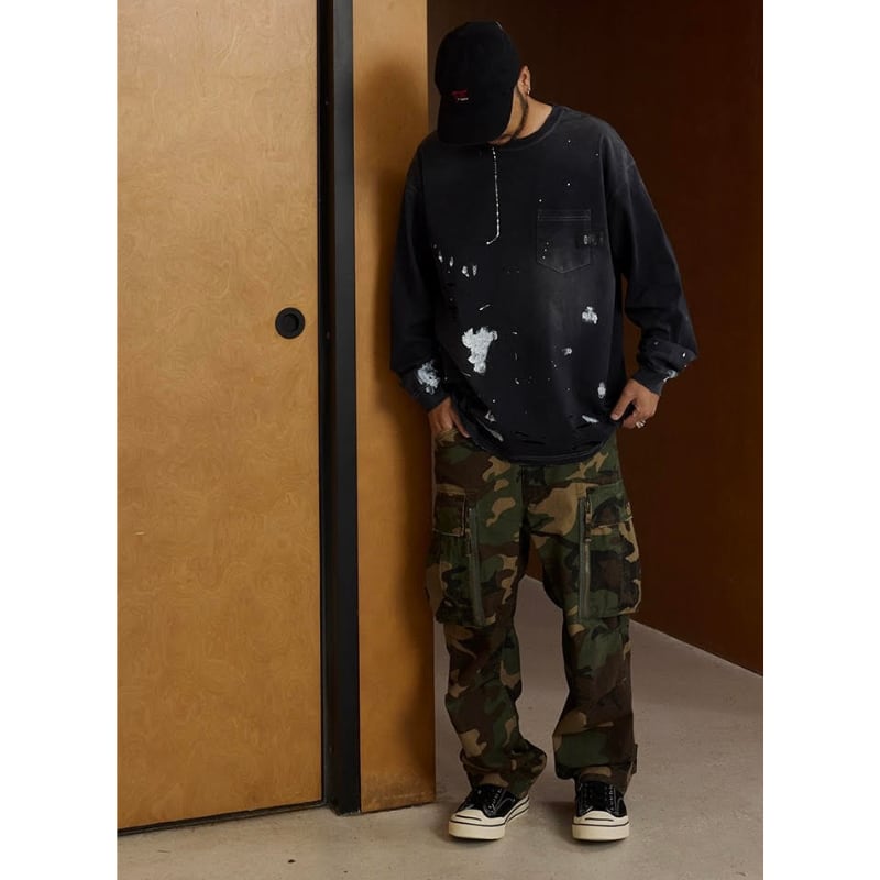 【商品管理番号】 M0561 【商品説明】 胸ポケット付きのダメージ加工が施された長袖Tシャツです。 カジュアルなデザインで、どんなスタイルにも合わせやすい一着。 こなれ感のある着こなしを楽しめるアイテムです。 BLACK/GREEN 【サイズ】 【S】胸囲:120cm / 着丈:72cm 【M】胸囲:124cm / 着丈:74cm 【L】胸囲:128cm / 着丈:76cm 【XL】胸囲:132cm / 着丈:78cm モデル身長:173㎝/体重:63㎏/着用サイズ:Sサイズ ※サイズは測り方により1-3㎝の誤差が生じる場合がございます。 【素材】 cotton100%