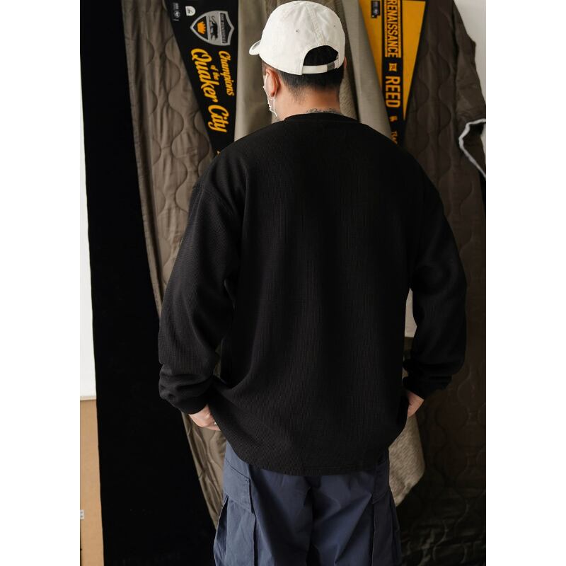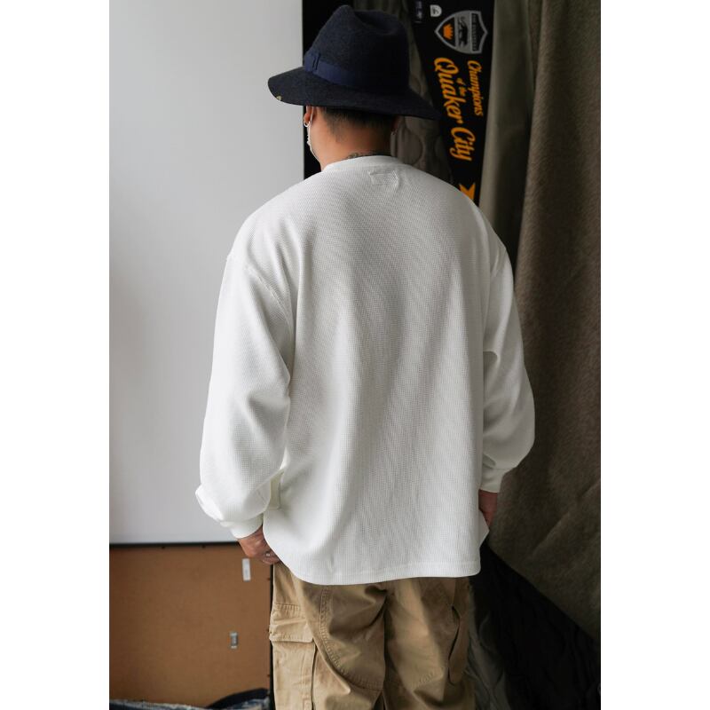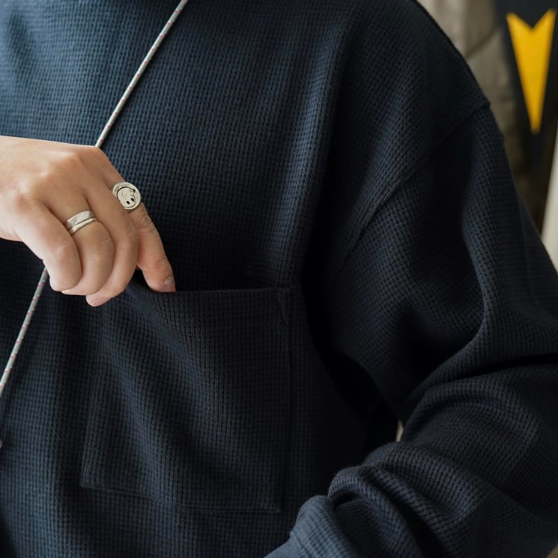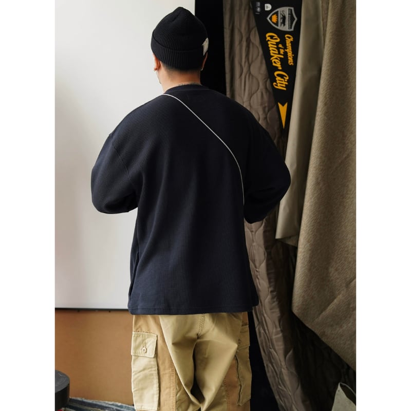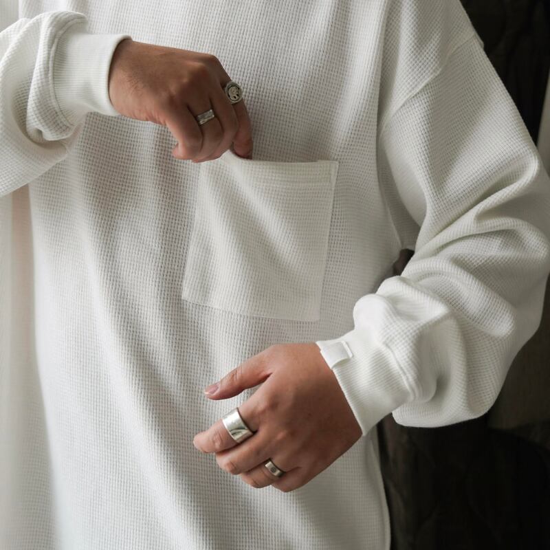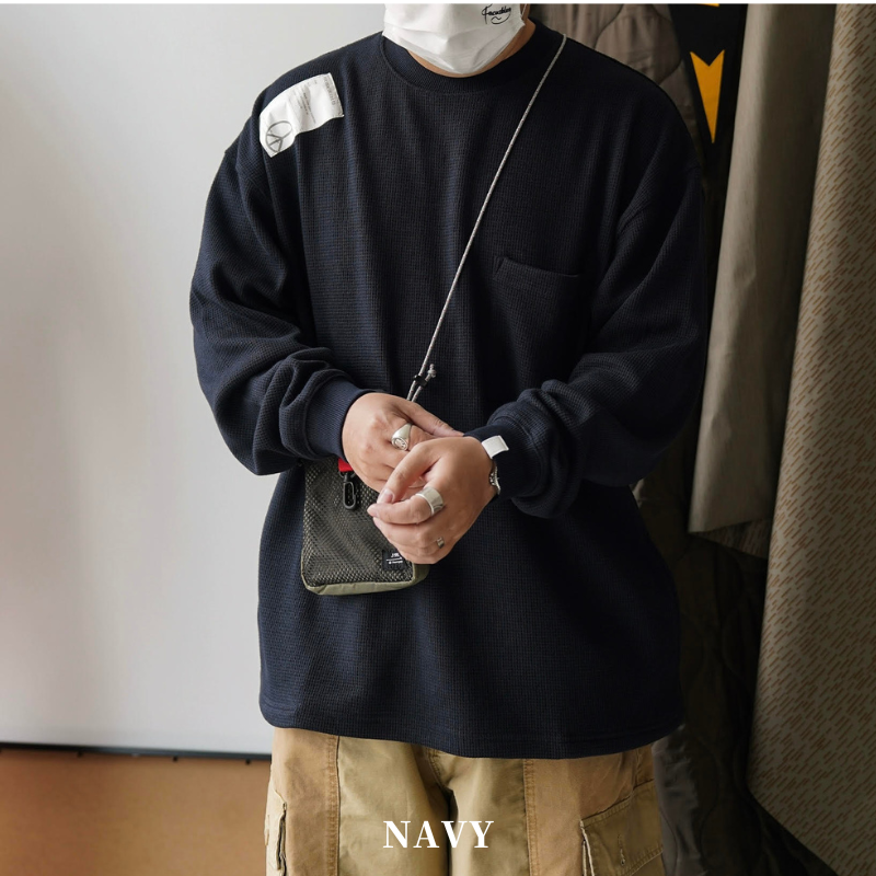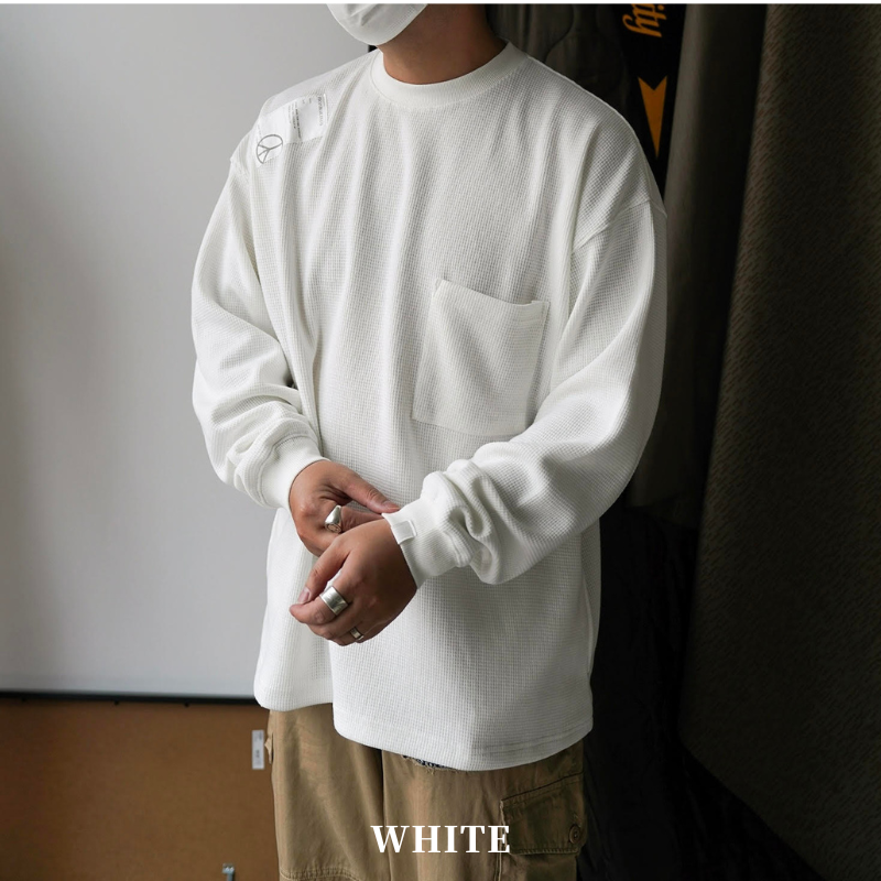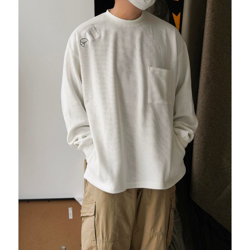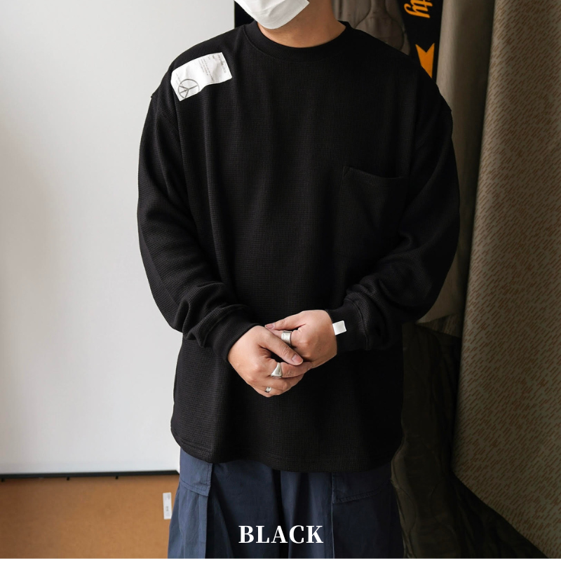 【商品管理番号】 M0558 【商品説明】 オーバーサイズで快適な着心地が魅力のワッフル長袖Tシャツです。 シンプルなデザインながら、そのスタイルはカジュアルにもキレイめにも対応可能。 胸ポケットがアクセントとなり、日常のコーディネートにさりげないおしゃれ感をプラスします。 WHITE/NAVY/BLACK 【サイズ】 【S】肩幅:58cm / 胸囲:114cm / 着丈:72cm / 袖丈:59cm 【M】肩幅:60cm / 胸囲:118cm / 着丈:74cm / 袖丈:60cm 【L】肩幅:62cm / 胸囲:122cm / 着丈:76cm / 袖丈:61cm モデル身長:173㎝/体重:70㎏/着用サイズ:サイズM ※サイズは測り方により1-3㎝の誤差が生じる場合がございます。 【素材】 cotton60%/polyester40%