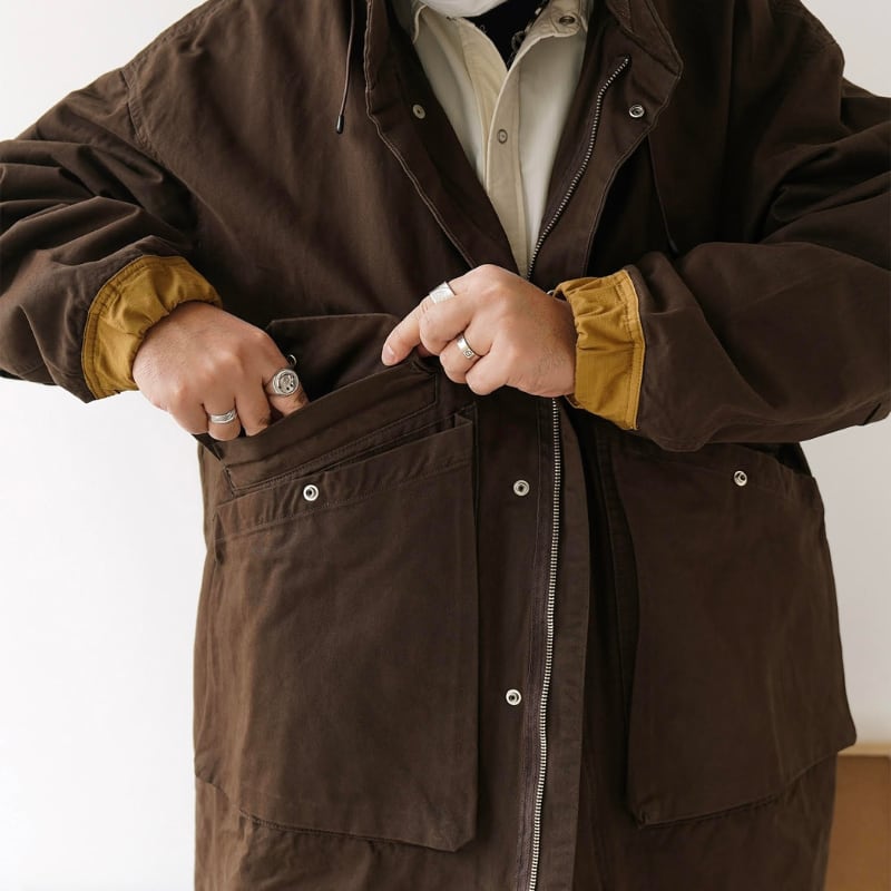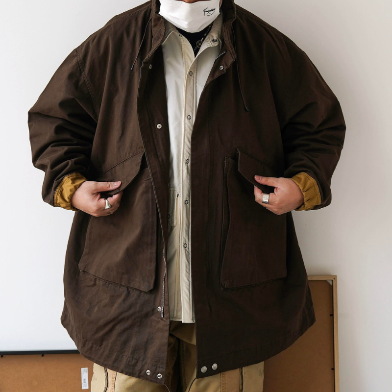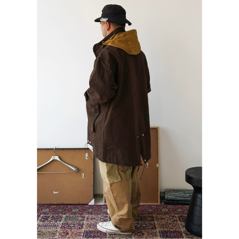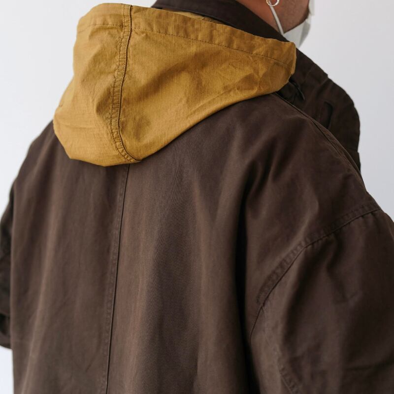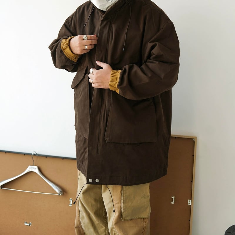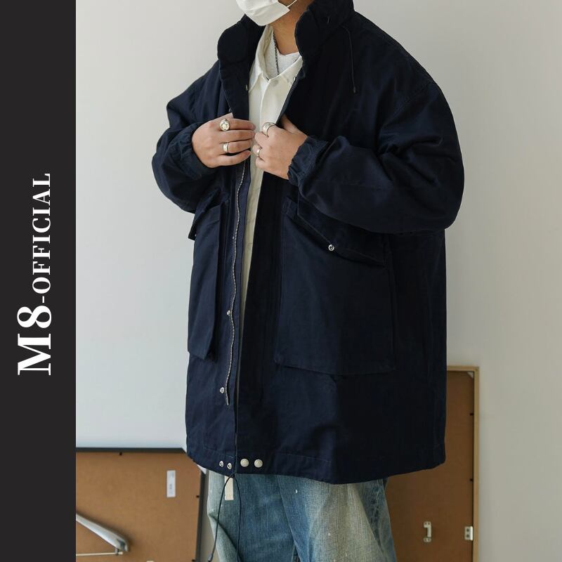 【商品管理番号】 M0572 【商品説明】 オーバーサイズが魅力のジッパー付きフードジャケットです。 取り外し可能なフードが特徴で、さまざまなスタイルに対応できる柔軟性があります。 リラックスしたい日やカジュアルなお出かけにもぴったりなアイテムです。 NAVY/BROWN 【サイズ】 【S】肩幅:60cm / 胸囲:132cm / 着丈:94cm / 袖丈:53cm 【M】肩幅:62cm / 胸囲:136cm / 着丈:96cm / 袖丈:55cm 【L】肩幅:64cm / 胸囲:140cm / 着丈:98cm / 袖丈:57cm モデル身長:173㎝/体重:70㎏/着用サイズ:Mサイズ ※サイズは測り方により1-3㎝の誤差が生じる場合がございます。 【素材】 cotton100%