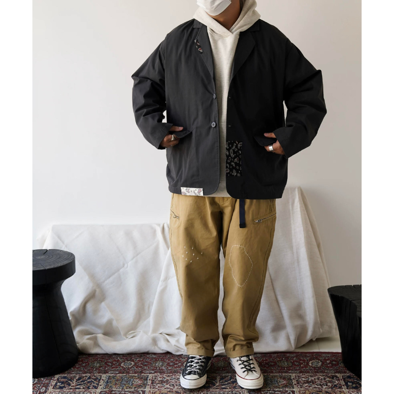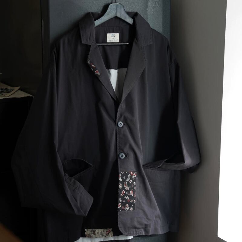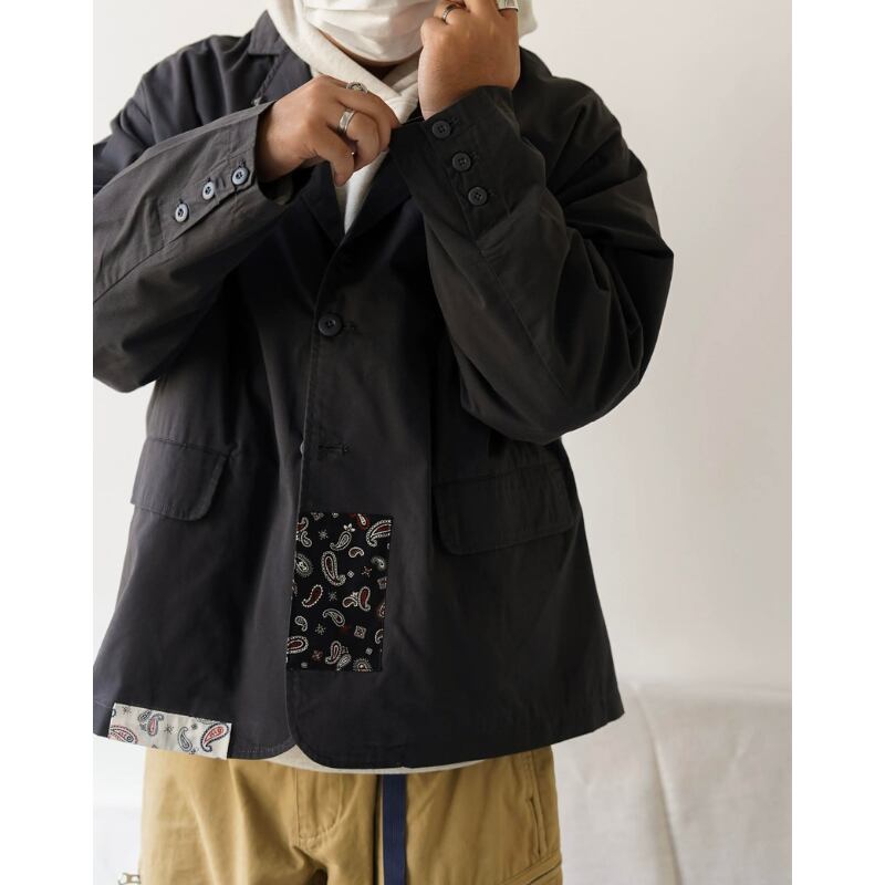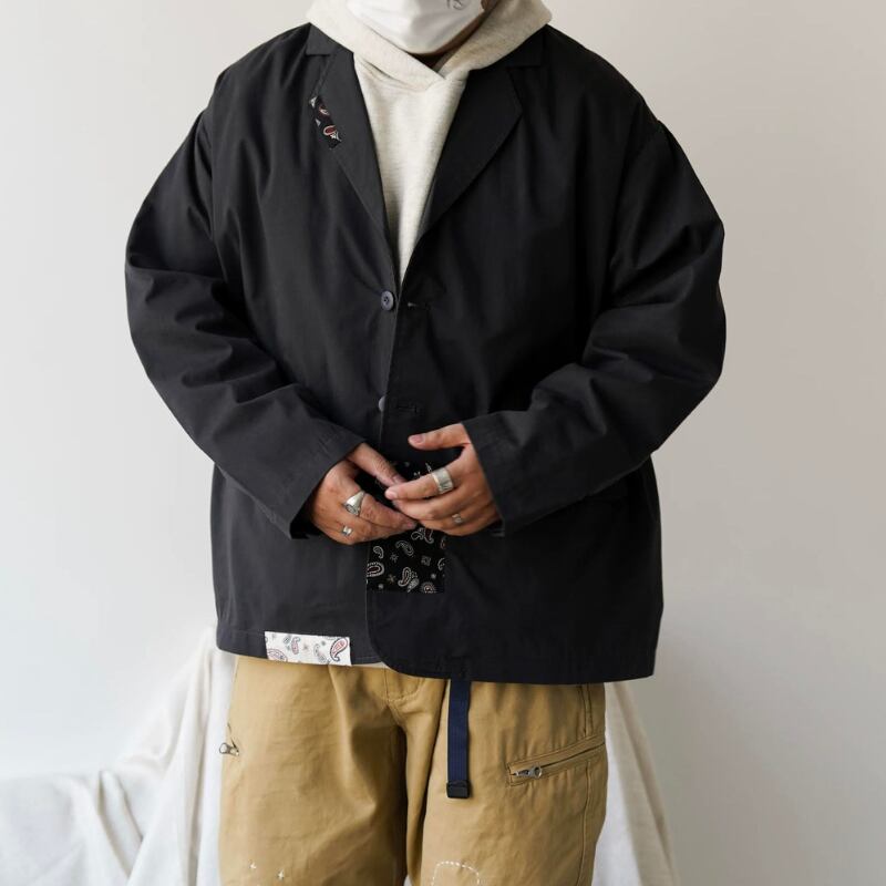 【商品管理番号】 M0585 【商品説明】 オーバーサイズデザインが特徴のパッチワークジャケットです。 レトロな雰囲気が魅力で、さりげなくスタイリッシュな印象を与えるアイテムです。 DARKGRAY 【サイズ】 【XS】肩幅:54cm / 胸囲:142cm / 着丈:69cm / 袖丈:55cm 【S】肩幅:56cm / 胸囲:146cm / 着丈:70.5cm / 袖丈:56cm 【M】肩幅:58cm / 胸囲:150cm / 着丈:72cm / 袖丈:57cm 【L】肩幅:60cm / 胸囲:154cm / 着丈:73.5cm / 袖丈:58cm モデル身長:173㎝/体重:70㎏/着用サイズ:Mサイズ ※サイズは測り方により1-3㎝の誤差が生じる場合がございます。 【素材】 cotton65%/polyester35%