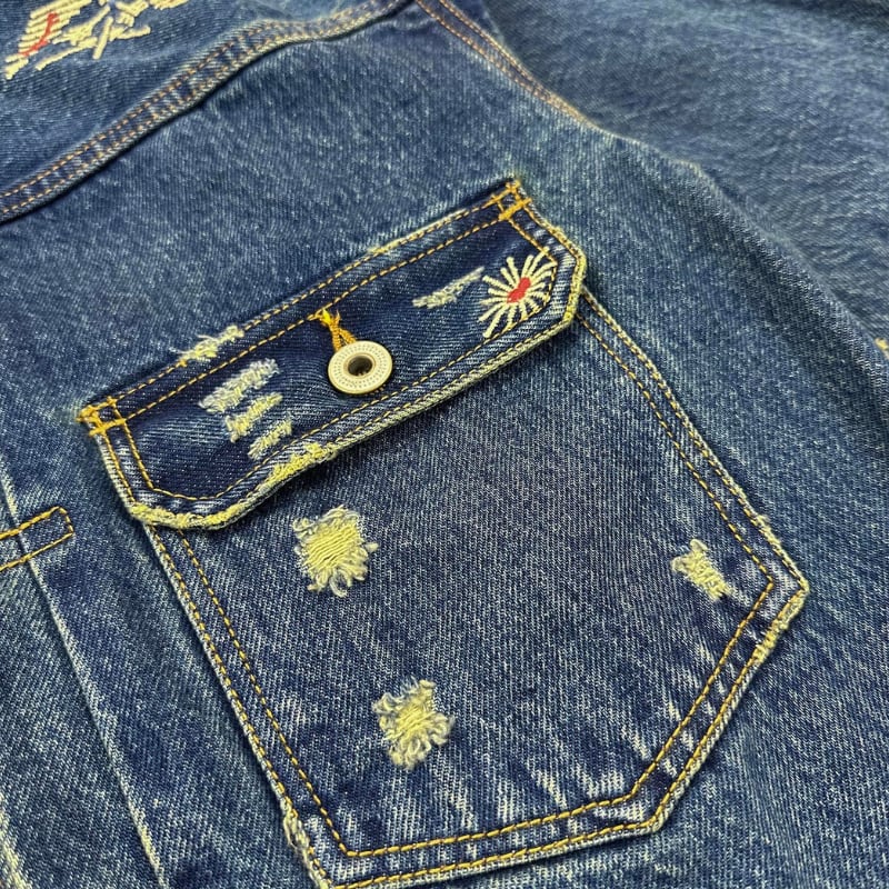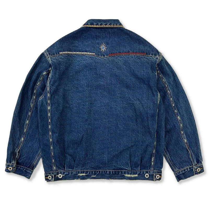 【商品管理番号】 M0595 【商品説明】 ユニークな刺繍が施されたレトロ感溢れるデニムジャケットです。サイドジッパーがアクセントとなり、スタイリッシュな印象を与えます。カジュアルなコーディネートにぴったりな一着で、着回しが効くデザインが魅力的です。 BLUE 【サイズ】 【S】肩幅:52cm / 胸囲:118cm / 着丈:64cm / 袖丈:52cm 【M】肩幅:54cm / 胸囲:122cm / 着丈:66cm / 袖丈:54cm 【L】肩幅:56cm / 胸囲:126cm / 着丈:68cm / 袖丈:56cm 【XL】肩幅:58cm / 胸囲:130cm / 着丈:70cm / 袖丈:58cm 【2XL】肩幅:60cm / 胸囲:134cm / 着丈:72cm / 袖丈:60cm ※サイズは測り方により1-3㎝の誤差が生じる場合がございます。 【素材】 cotton100%