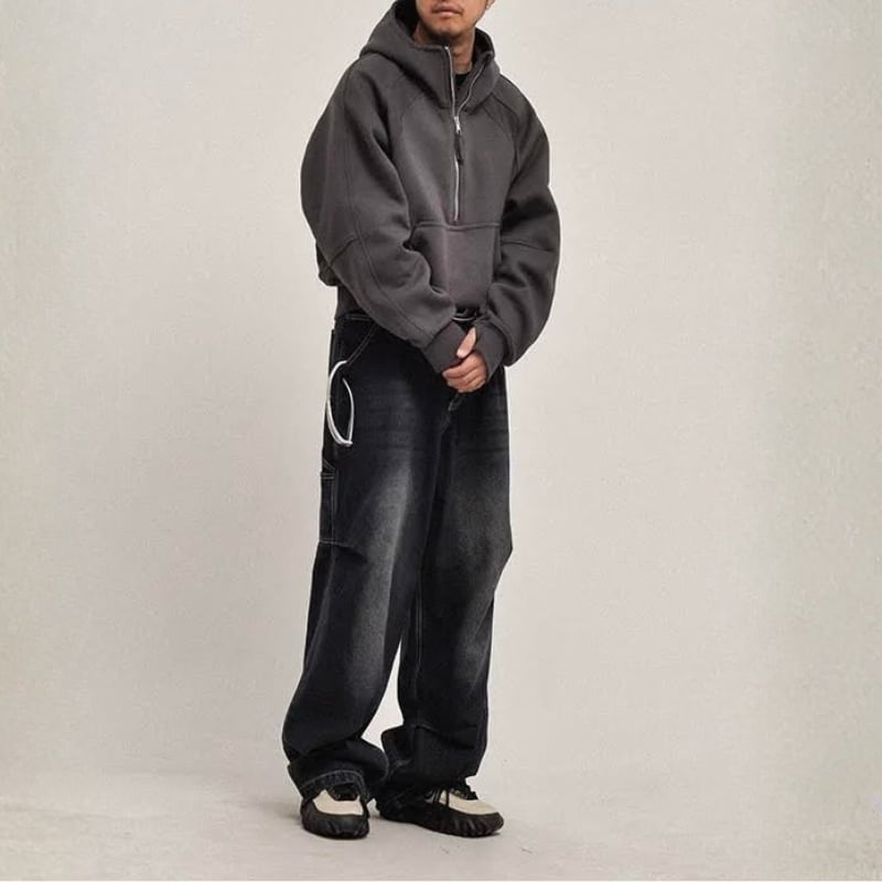 【商品管理番号】 M0601 【商品説明】 ハーフジッパーが特徴的なフード付きプルオーバーのパーカーです。リラックス感のあるゆったりとしたシルエットで、カジュアルなコーディネートにぴったり。4色から選べる豊富なカラーバリエーションは、シーンや気分に合わせて自由にコーディネートを楽しむことができます。お出かけからリラックスしたい日まで、多様なスタイルに対応する万能アイテムです。 BLACK/LIGHTGRAY/DARKGRAY/NAVY 【サイズ】 【M】肩幅: 61cm / 胸囲:128cm / 着丈:60cm / 袖丈:62cm 【L】肩幅: 63cm / 胸囲:132cm / 着丈:62cm / 袖丈:63cm 【XL】肩幅: 65cm / 胸囲:136cm / 着丈:64cm / 袖丈:64cm 【2XL】肩幅: 67cm / 胸囲:140cm / 着丈:66cm / 袖丈:65cm ※サイズは測り方により1-3㎝の誤差が生じる場合がございます。 【素材】 cotton70%/polyester30%