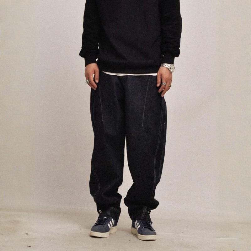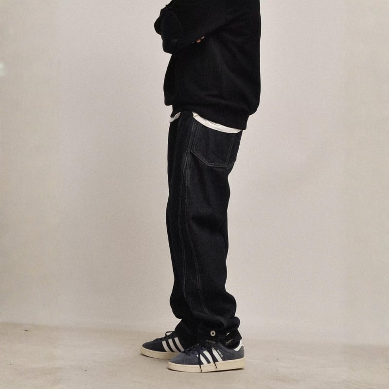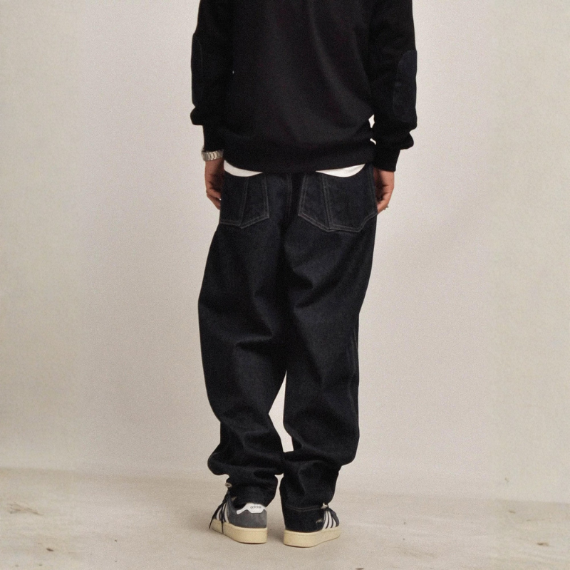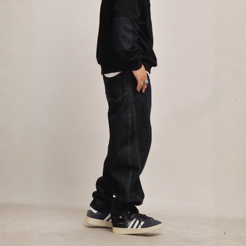 【商品管理番号】 M0604 【商品説明】 カジュアルなスタイルに最適なリラックス感あふれるデニムパンツです。ゆったりとしたワイドシルエットが特徴で、快適な着心地を実現しています。ネイビーのシンプルなデザインは、幅広いシーンで活躍し、デイリールックやリラックスしたい日にもぴったりです。 DARKNAVY 【サイズ】 【S】ウエスト:76cm / ヒップ:110cm / 着丈:100cm / 脚口:39cm 【M】ウエスト:80cm / ヒップ:114cm / 着丈:102cm / 脚口:40cm 【L】ウエスト:84cm / ヒップ:118cm / 着丈:104cm / 脚口:41cm 【XL】ウエスト:88cm / ヒップ:122cm / 着丈:106cm / 脚口:42cm 【2XL】ウエスト:92cm / ヒップ:126cm / 着丈:108cm / 脚口:43cm ※サイズは測り方により1-3㎝の誤差が生じる場合がございます。 【素材】 cotton91%/polyester7%/rayon2%