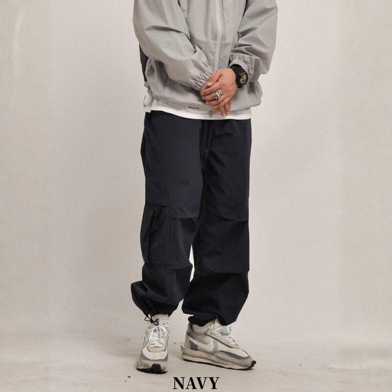 【商品管理番号】 M0610 【商品説明】 カジュアルでリラックス感あふれるワイドストレートパンツです。ゆったりとしたシルエットが特徴で、アウトドアからデイリーユースまで幅広いシーンでご活用いただけます。 NAVY/BLACK 【サイズ】 【M】ウエスト:72cm / ヒップ:56cm / 着丈:100cm 【L】ウエスト:76cm / ヒップ:56cm / 着丈:102cm 【XL】ウエスト:80cm / ヒップ:56cm / 着丈:104cm ※サイズは測り方により1-3㎝の誤差が生じる場合がございます。 【素材】 polyester100%
