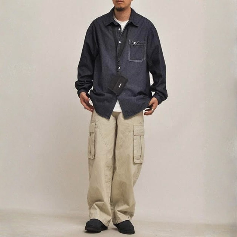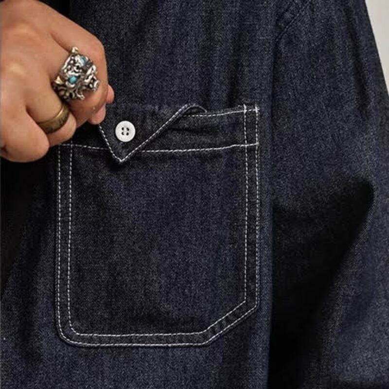 【商品管理番号】 M0611 【商品説明】 オーバーサイズデザインが魅力のレトロなデニムシャツです。カジュアルなスタイルにぴったりで、ゆったりとしたシルエットがリラックス感を演出します。胸ポケット付きで、スマートなアクセントを加え、デイリールックからお出かけまで幅広いシーンで活躍するアイテムです。 DARKNAVY 【サイズ】 【M】肩幅:54cm / バスト:128cm / 着丈:70cm / 袖丈:58cm 【L】肩幅:55cm / バスト:132cm / 着丈:72cm / 袖丈:59cm 【XL】肩幅:56cm / バスト:136cm / 着丈:74cm / 袖丈:60cm 【2XL】肩幅:57cm / バスト:140cm / 着丈:76cm / 袖丈:61cm ※サイズは測り方により1-3㎝の誤差が生じる場合がございます。 【素材】 cotton87%/polyester13%