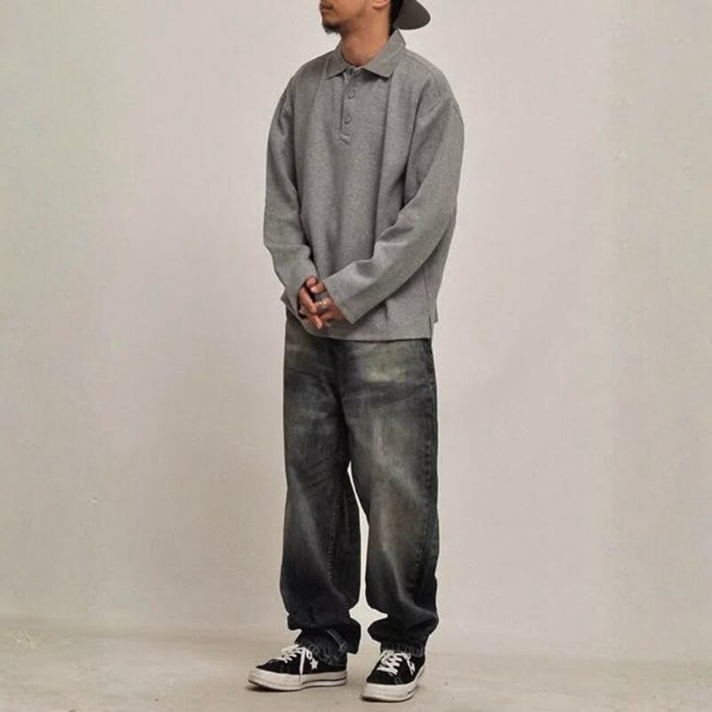【商品管理番号】 M0623 【商品説明】 オーバーサイズデザインでリラックスした着心地を実現したカジュアルポロシャツです。襟付きのスタイルが洗練された印象を与え、シンプルな無地デザインはどんなコーディネートにもマッチします。 GRAY/BLACK 【サイズ】 【M】肩幅:52cm / 胸囲:124cm / 着丈:65cm / 袖丈:56cm 【L】肩幅:53cm / 胸囲:128cm / 着丈:67cm / 袖丈:57cm 【XL】肩幅:54cm / 胸囲:132cm / 着丈:69cm / 袖丈:59cm 【2XL】肩幅:55cm / 胸囲:136cm / 着丈:71cm / 袖丈:60cm ※サイズは測り方により1-3㎝の誤差が生じる場合がございます。 【素材】 polyester51%/cotton45%/polyurethane4%