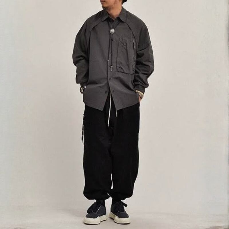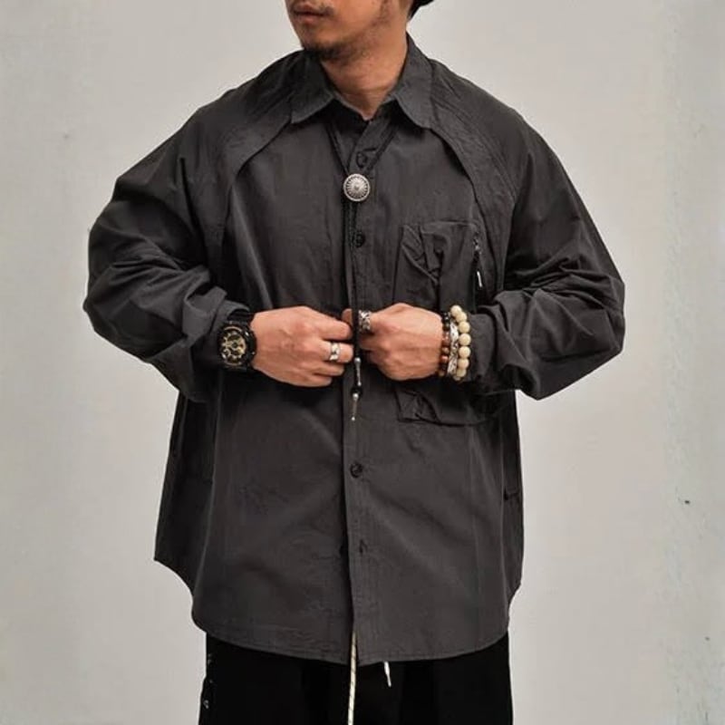 【商品管理番号】 M0624 【商品説明】 カジュアルな雰囲気を醸し出す、レトロな長袖シャツです。無地のシンプルなデザインに胸ポケットがポイントとなり、さまざまなスタイルにマッチします。2カラー展開で、幅広いコーディネートが楽しめるアイテムです。 DARKGRAY/BLACK 【サイズ】 【M】胸囲:130cm / 着丈:74cm / 袖丈:79cm 【L】胸囲:134cm / 着丈:76cm / 袖丈:81cm 【XL】胸囲:138cm / 着丈:78cm / 袖丈:82cm ※サイズは測り方により1-3㎝の誤差が生じる場合がございます。 【素材】 cotton100%
