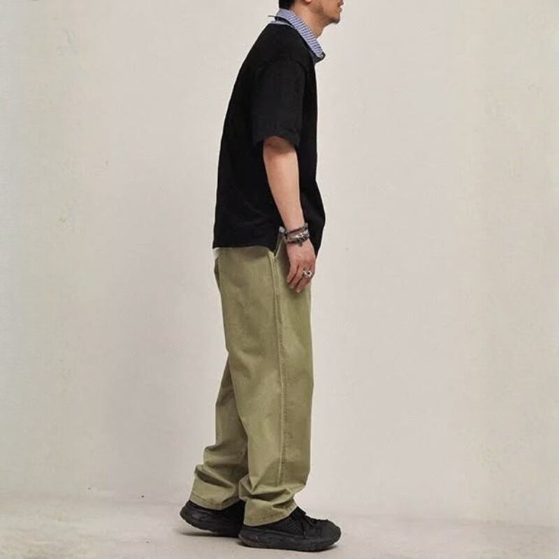 【商品管理番号】 M0628 【商品説明】 カジュアルなスタイルにぴったりなリラックス感溢れるワイドストレートパンツです。ゆったりとしたシルエットが特徴で、快適な着心地を実現。シンプルでありながら、コーディネートの幅を広げてくれる万能アイテムです。 DARKGREEN/DARKGRAY/KHAKIGREEN 【サイズ】 【M】ウエスト:82cm / ヒップ:114cm / 着丈:100cm / 太もも周り:70cm / 裾周り:44cm 【L】ウエスト:86cm / ヒップ:118cm / 着丈:102cm / 太もも周り:72cm / 裾周り:45cm 【XL】ウエスト:90cm / ヒップ:122cm / 着丈:105cm / 太もも周り:74cm / 裾周り:46cm 【2XL】ウエスト:94cm / ヒップ:126cm / 着丈:107cm / 太もも周り:76cm / 裾周り:47cm ※サイズは測り方により1-3㎝の誤差が生じる場合がございます。 【素材】 cotton 100%
