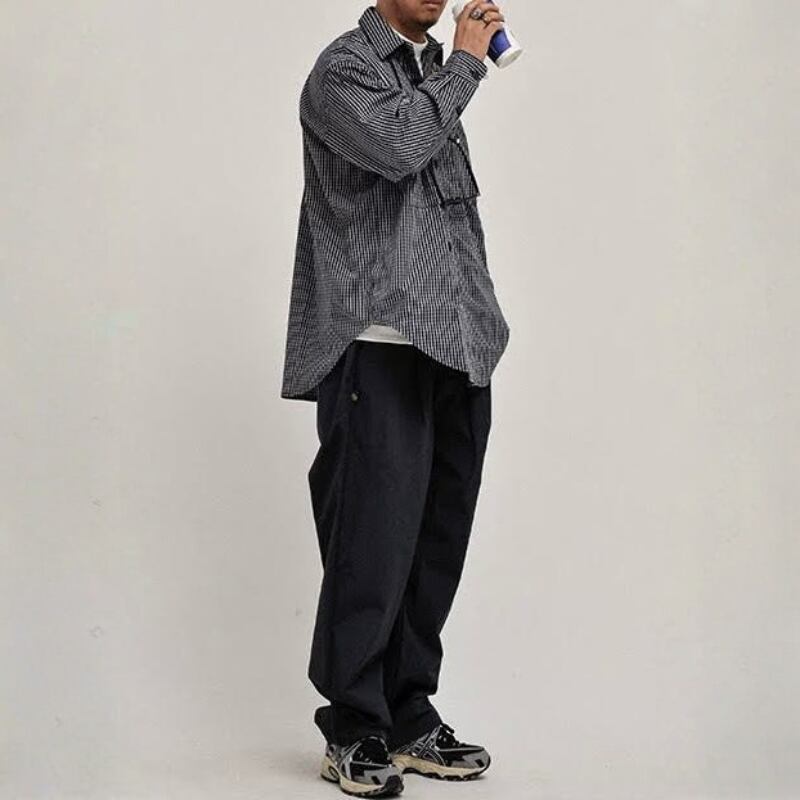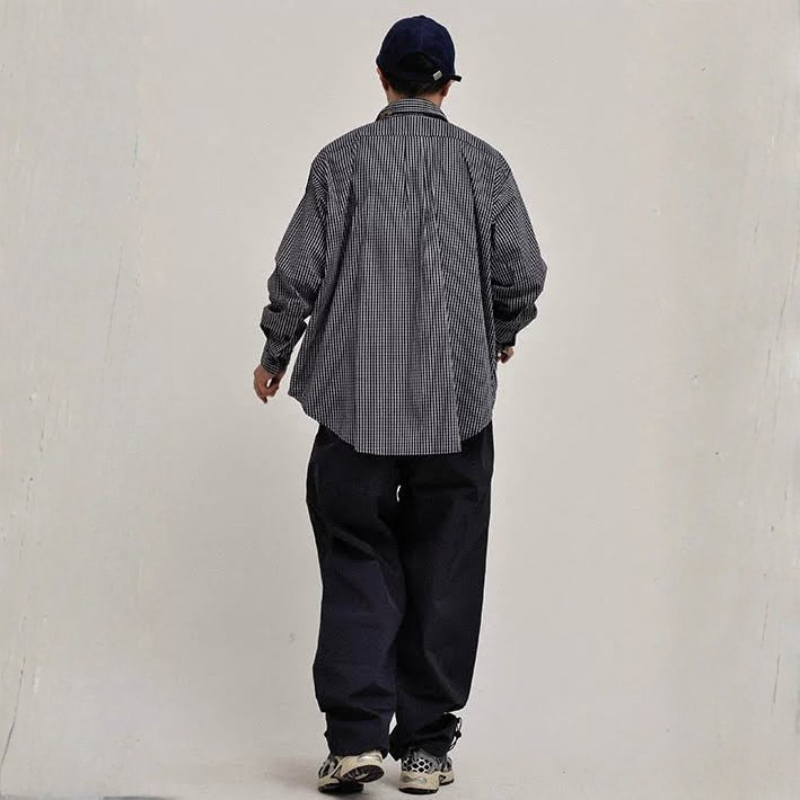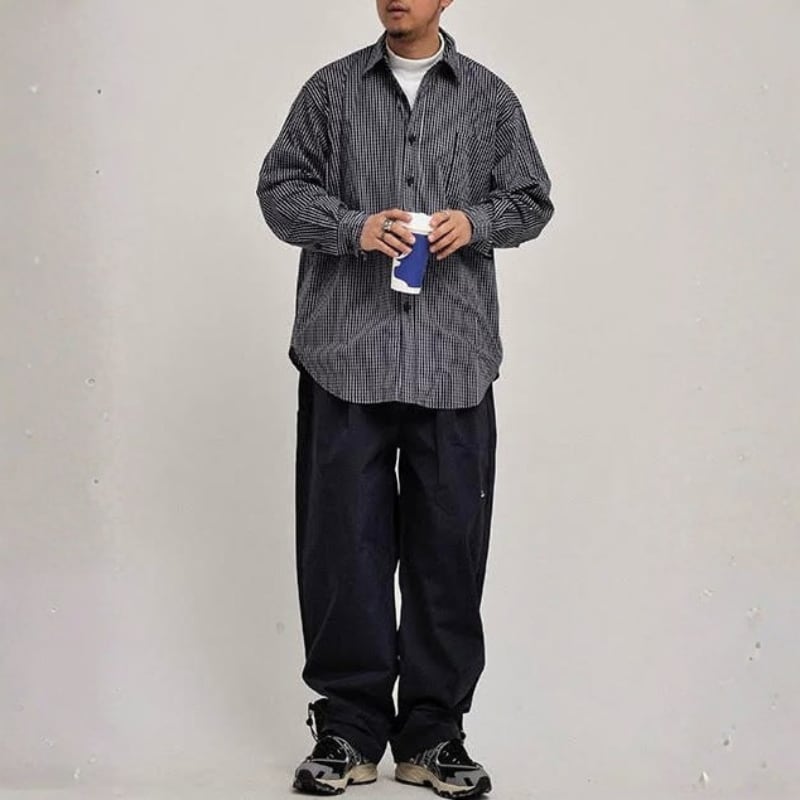 【商品管理番号】 M0629 【商品説明】 オーバーサイズデザインが魅力的なチェック柄シャツです。カジュアルなスタイルを楽しむのにぴったり。さまざまなコーディネートに合わせやすく、デイリーユースに最適なアイテムです。 NAVY 【サイズ】 【M】肩幅:52cm / 胸囲:144cm / 着丈:75cm / 袖丈:56cm 【L】肩幅:54cm / 胸囲:148cm / 着丈:77cm / 袖丈:57cm 【XL】肩幅:55cm / 胸囲:152cm / 着丈:78cm / 袖丈:59cm 【2XL】肩幅:57cm / 胸囲:156cm / 着丈:80cm / 袖丈:60cm ※サイズは測り方により1-3㎝の誤差が生じる場合がございます。 【素材】 cotton95%/polyester5%