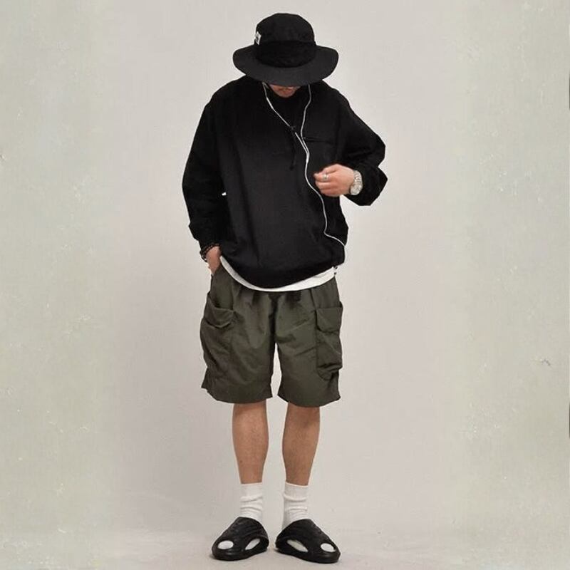 【商品管理番号】 M0634 【商品説明】 カジュアルなスタイルにぴったりなワイドレッグのハーフパンツです。ルーズなシルエットが魅力で、ゆったりとした着心地が特徴です。アウトドアシーンやデイリーユースに最適な一着で、3色のバリエーションからお選びいただけます。 GREEN/PURPLE/BLACK 【サイズ】 【M】ウエスト:72cm / ヒップ:128cm / 着丈:56cm / 裾周り:57cm 【L】ウエスト:76cm / ヒップ:132cm / 着丈:58cm / 裾周り:58cm 【XL】ウエスト:80cm / ヒップ:136cm / 着丈:60cm / 裾周り:59cm 【2XL】ウエスト:84cm / ヒップ:140cm / 着丈:62cm / 裾周り:60cm ※サイズは測り方により1-3㎝の誤差が生じる場合がございます。 【素材】 nylon100%