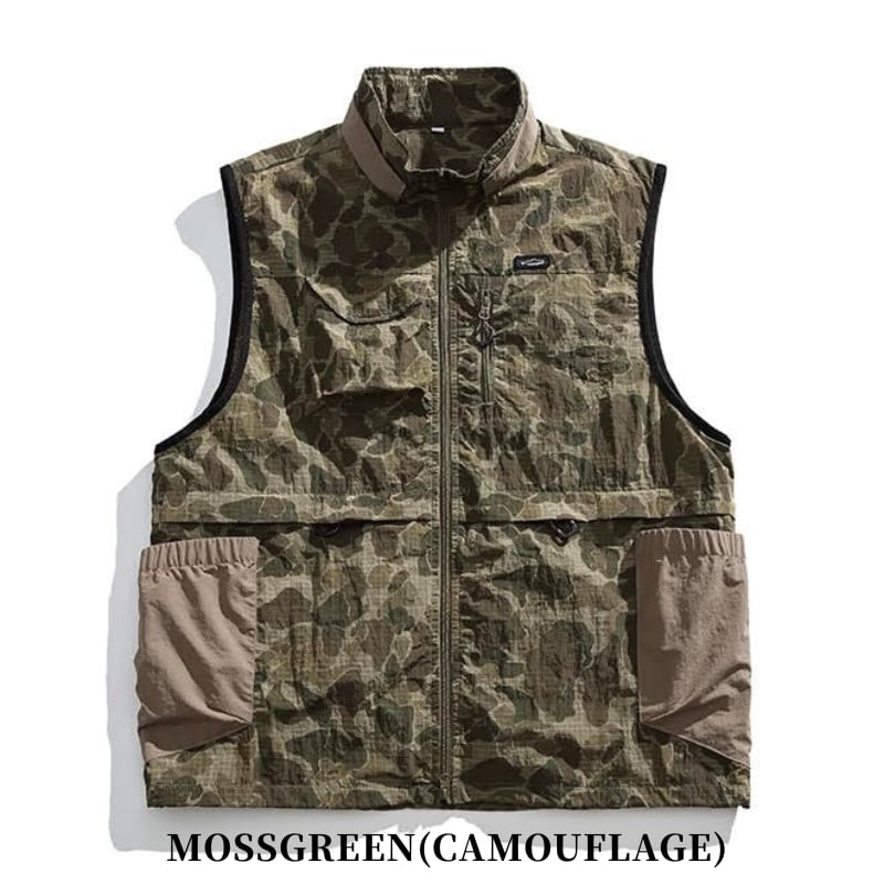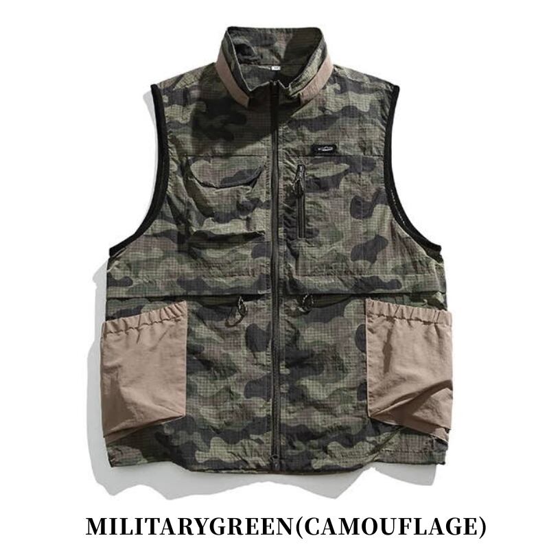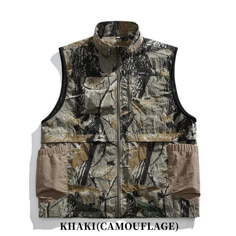 【商品管理番号】 M0642 【商品説明】 アウトドアシーンにぴったりの防水ジッパーベストジャケットです。カモフラ柄と無地の全6色から選べるので、お好みに合わせてコーディネートが楽しめます。 MILITARYGREEN(CAMOUFLAGE)/MOSSGREEN(CAMOUFLAGE)/KHAKI(CAMOUFLAGE)/DARKGREEN/BRACK/BROWN 【サイズ】 【M】肩幅:42.5cm / 胸囲:56.5cm / 着丈:68cm / 裾幅:42.5cm 【L】肩幅:47cm / 胸囲:61cm / 着丈:71cm / 裾幅:47cm 【XL】肩幅:50cm / 胸囲:64cm / 着丈:73cm / 裾幅:50cm ※サイズは測り方により1-3㎝の誤差が生じる場合がございます。 【素材】 nylon100%