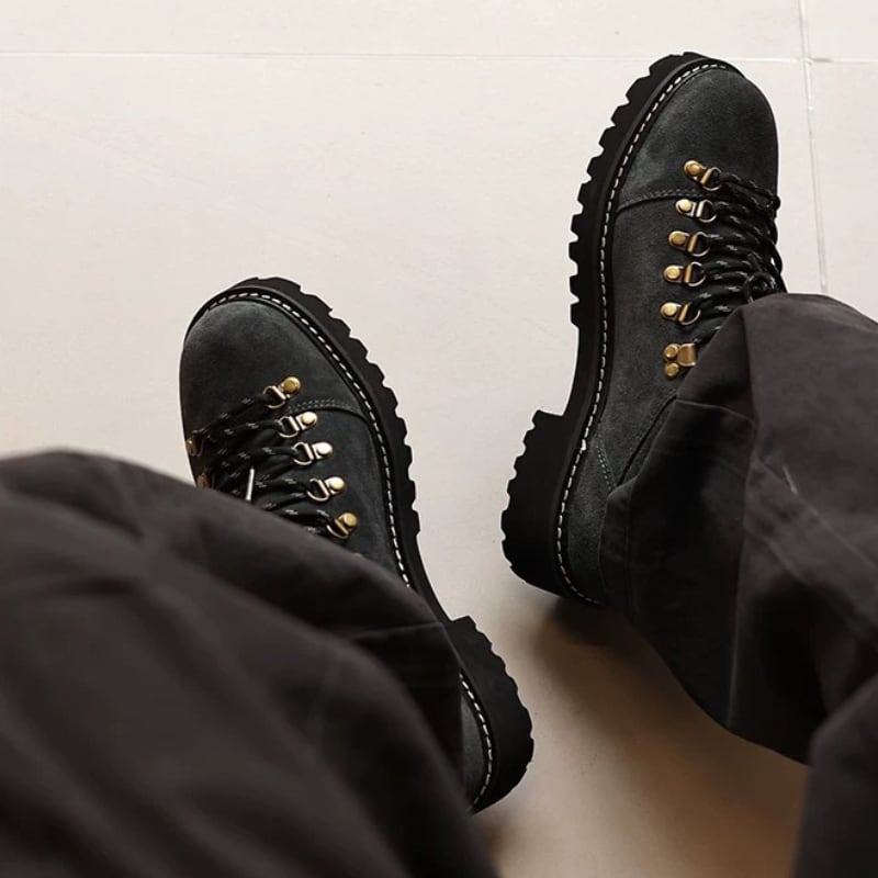 【商品管理番号】 M0656 【商品説明】 スエード調のアッパーにメタルフックを組み合わせたレースアップシューズ。程よいボリューム感のソールが足元に安定感を与え、シンプルながら存在感のある仕上がり。合わせるアイテムを選ばず、日常のスタイリングに自然と馴染みます。 BLACK/BROWN 【サイズ】 【36】22.3- 22.8cm 【37】22.9- 23.4cm 【38】23.5- 24.0cm 【39】24.1- 24.8cm 【40】24.9- 25.3cm 【41】25.4- 25.9cm 【42】26.0- 26.6cm 【43】26.7- 27.2cm 【44】27.3- 27.8cm ※サイズは測り方により1-3㎝の誤差が生じる場合がございます。 【素材】