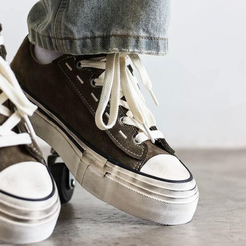 【商品管理番号】 M0658 【商品説明】 クラシックなローカットシルエットに厚みのあるソールを組み合わせたスニーカー。ステッチやトゥの表情がさりげないポイントになり、足元にほどよい存在感を加えます。シンプルな装いにも取り入れやすく、全体のバランスを引き締める一足です。 ARMYGREEN/BLACK/WHITEGRAY 【サイズ】 【36】22.3- 22.8cm 【37】22.9- 23.4cm 【38】23.5- 24.0cm 【39】24.1- 24.8cm 【40】24.9- 25.3cm 【41】25.4- 25.9cm 【42】26.0- 26.6cm 【43】26.7- 27.2cm 【44】27.3- 27.8cm ※サイズは測り方により1-3㎝の誤差が生じる場合がございます。 【素材】