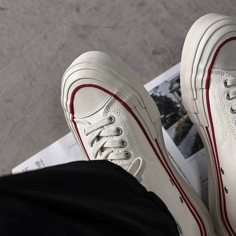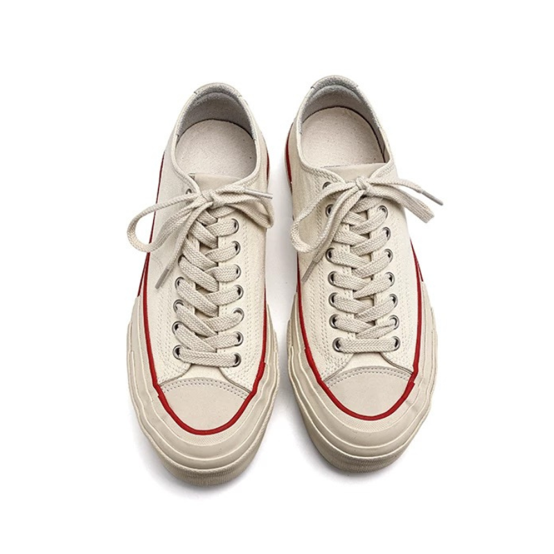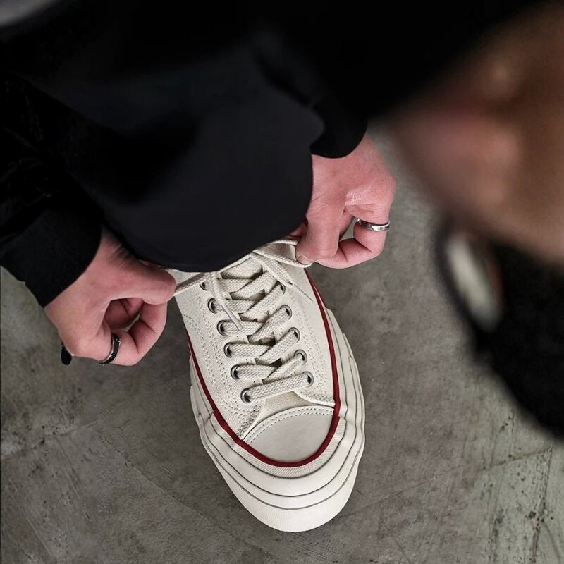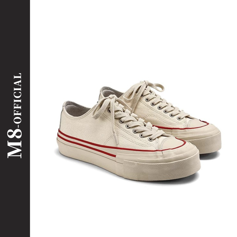 【商品管理番号】 M0660 【商品説明】 ローカットのキャンバスアッパーに厚みのあるソールを組み合わせたスニーカー。サイドラインとトゥ周りのディテールが、シンプルな中に表情を加えます。足元に程よいボリュームを持たせ、全体のバランスを整える一足です。 WHITE/BLACK/RED 【サイズ】 【36】22.3- 22.8cm 【37】22.9- 23.4cm 【38】23.5- 24.0cm 【39】24.1- 24.8cm 【40】24.9- 25.3cm 【41】25.4- 25.9cm 【42】26.0- 26.6cm 【43】26.7- 27.2cm 【44】27.3- 27.8cm ※サイズは測り方により1-3㎝の誤差が生じる場合がございます。 【素材】