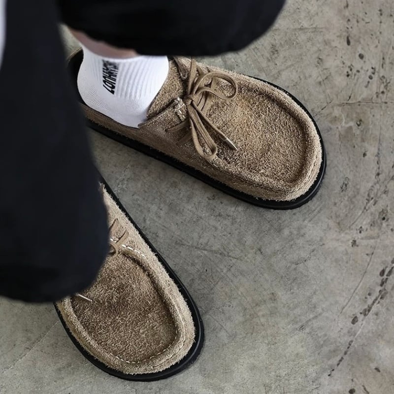 【商品管理番号】 M0661 【商品説明】 スエード調の素材感が足元に落ち着いた表情を与えるミュールタイプのシューズ。レースアップデザインとスクエア寄りのトゥラインが、ラフになりすぎない印象に仕上げています。履きやすさと見た目のバランスを両立した一足です。 BROWN/BLACK 【サイズ】 【36】22.3- 22.8cm 【37】22.9- 23.4cm 【38】23.5- 24.0cm 【39】24.1- 24.8cm 【40】24.9- 25.3cm 【41】25.4- 25.9cm 【42】26.0- 26.6cm 【43】26.7- 27.2cm 【44】27.3- 27.8cm ※サイズは測り方により1-3㎝の誤差が生じる場合がございます。 【素材】