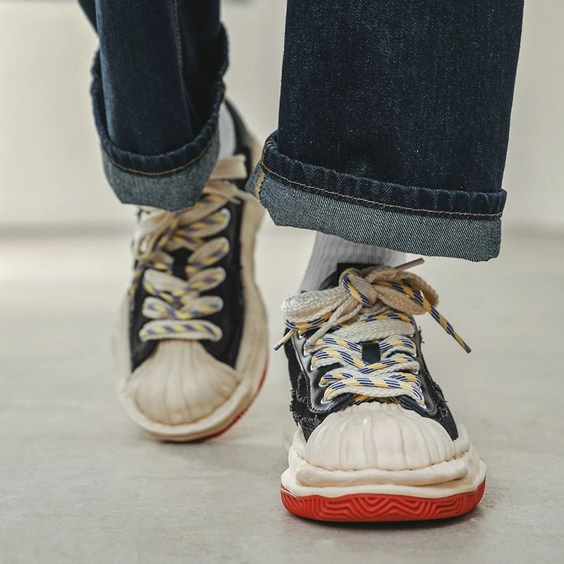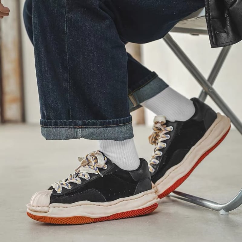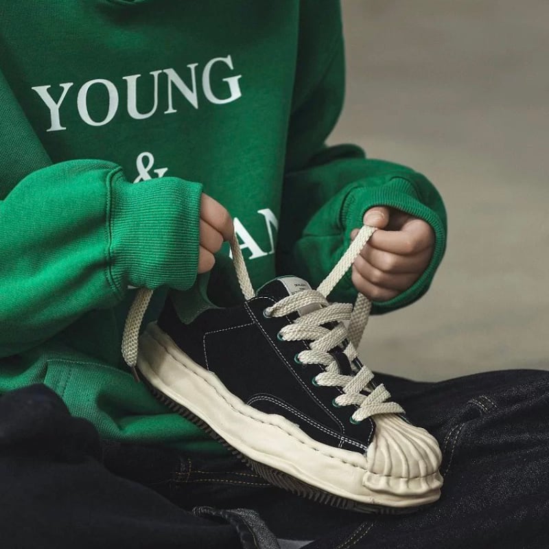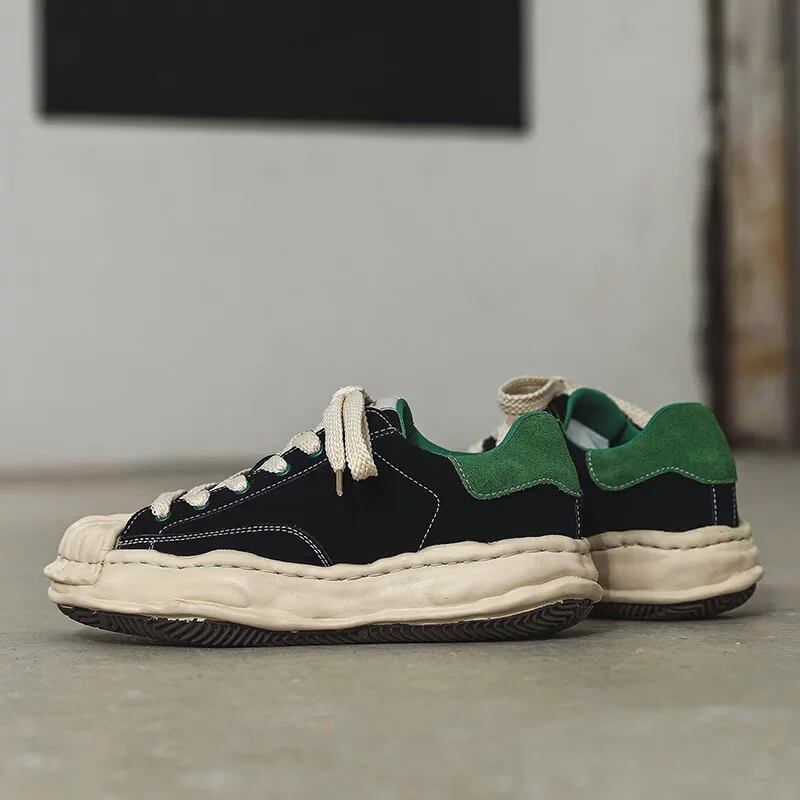 【商品管理番号】 M0669 【商品説明】 立体感のあるトゥデザインが目を引く、コントラスト配色のスニーカー。キャンバス素材を組み合わせたアッパーに、存在感のあるレースアップがアクセントになっています。足元にほどよいボリュームを持たせ、スタイリングを引き締める一足です。 BLACK/GREEN 【サイズ】 【38】24.0cm 【39】24.5cm 【40】25cm 【41】25.5cm 【42】26.0cm 【43】26.5cm 【44】27cm 【45】28cm ※サイズは測り方により1-3㎝の誤差が生じる場合がございます。 【素材】