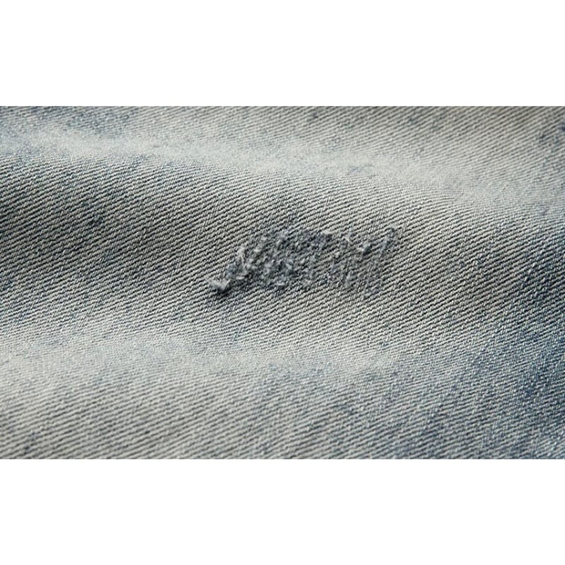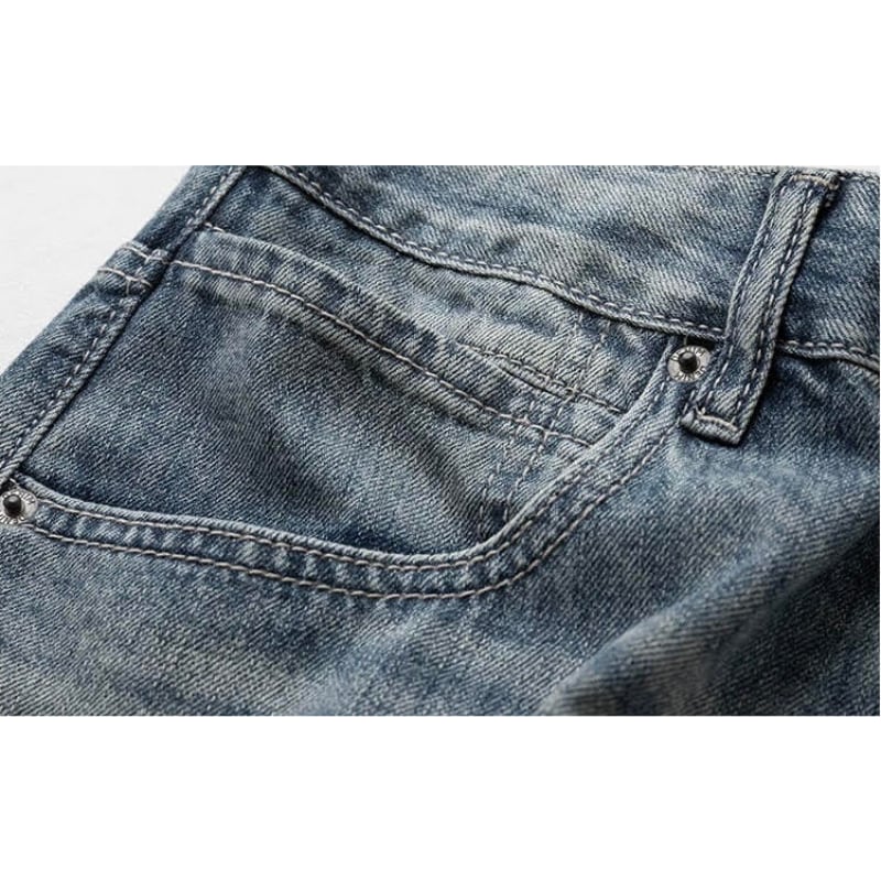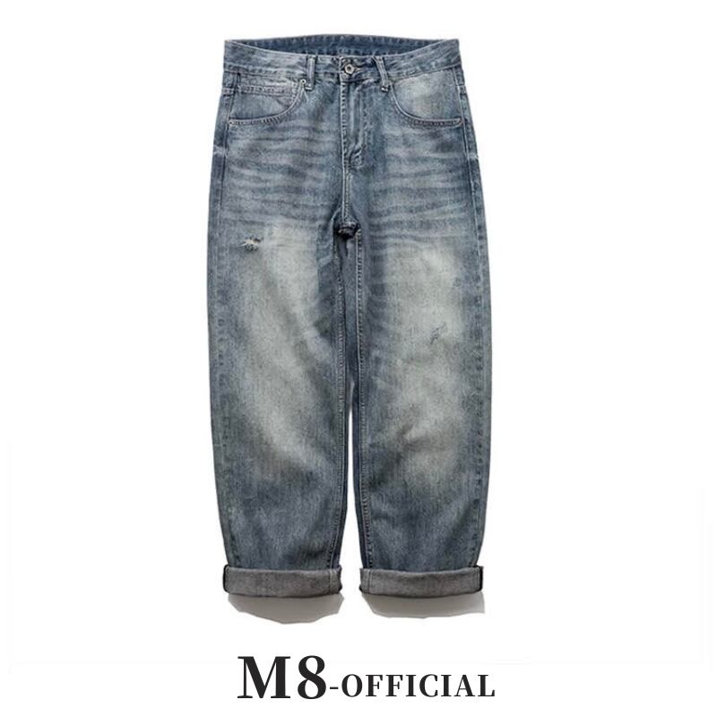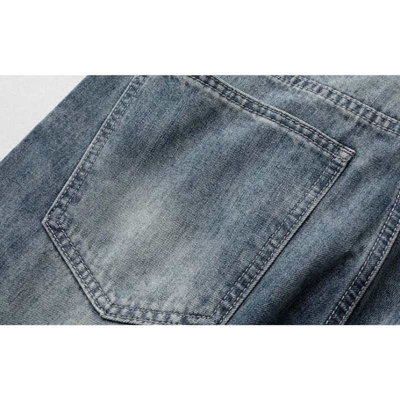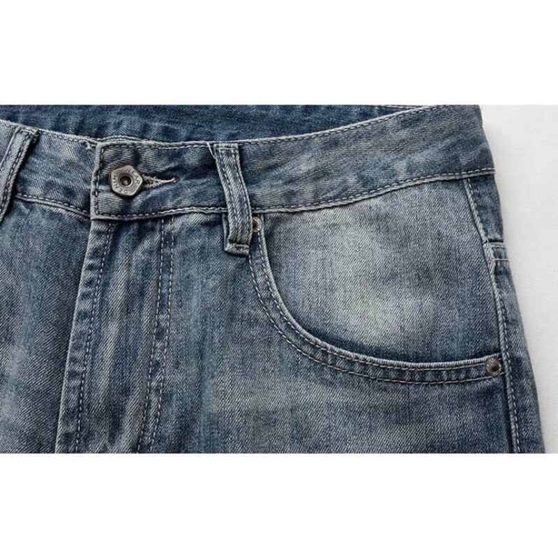 カジュアルなスタイルにぴったりな、ダメージ加工が施されたワイドでリラックスしたフィット感のデニムパンツです。レトロな雰囲気が魅力的で、どんなコーディネートにも合わせやすく、普段使いやお出かけ時にも最適なアイテムです。楽な着心地とスタイリッシュなデザインで、あなたの日常をサポートします。