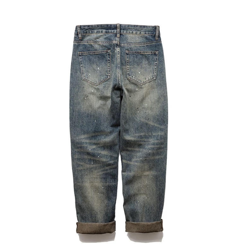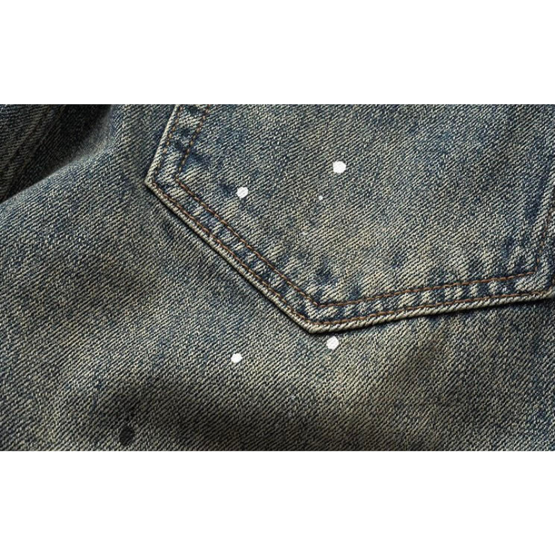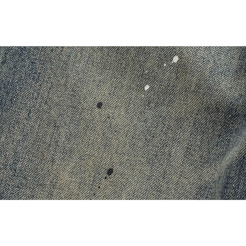 カジュアルなスタイルを楽しむためのワイドシルエットのインクスプラッシュデニムパンツです。個性的なインクスプラッシュデザインが目を引き、リラックスした雰囲気を演出します。スマートな着こなしが実現できるので、日常のコーディネートやお出かけシーンにもおすすめのアイテムです。